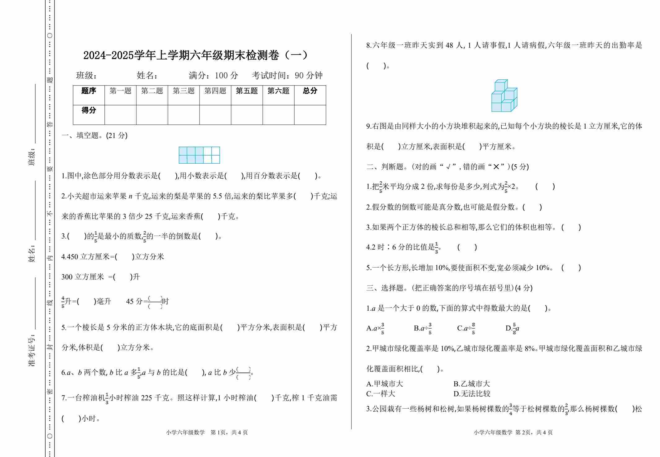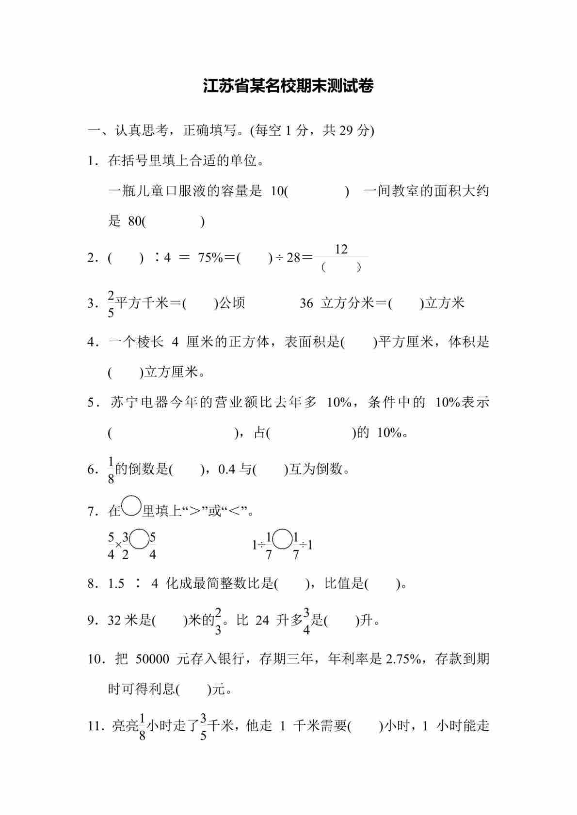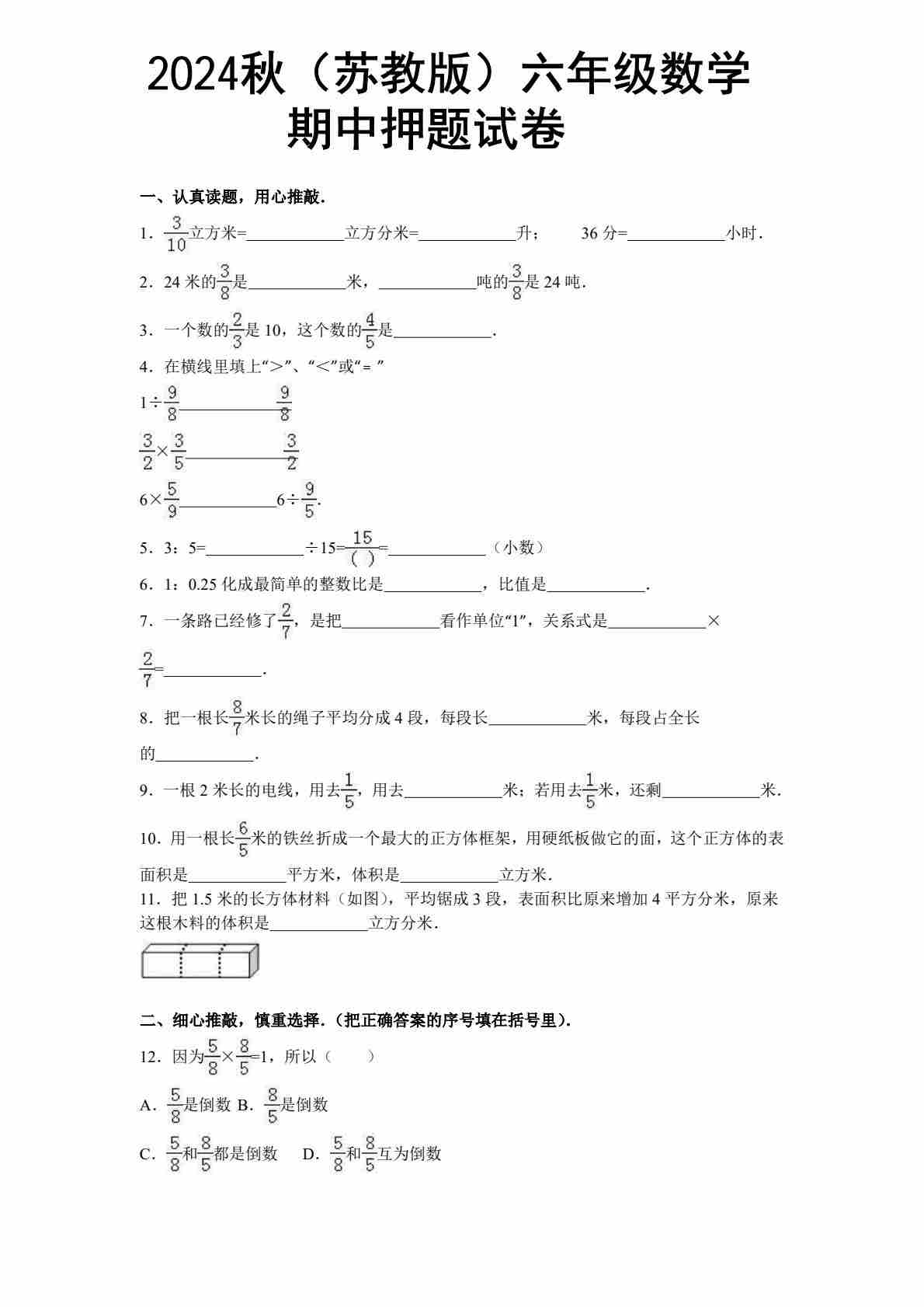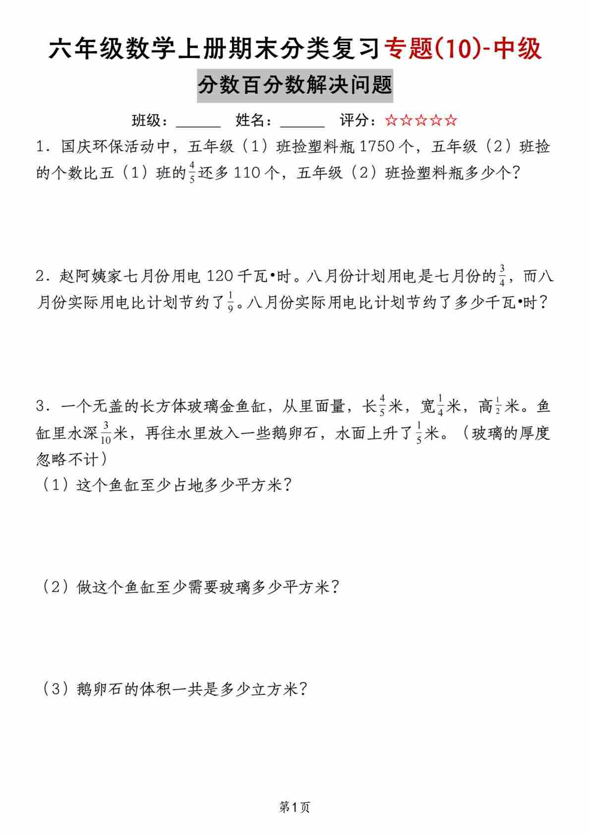 六(上)数学苏教版《六年级数学上册期末分类复习专题(3)-高级》_