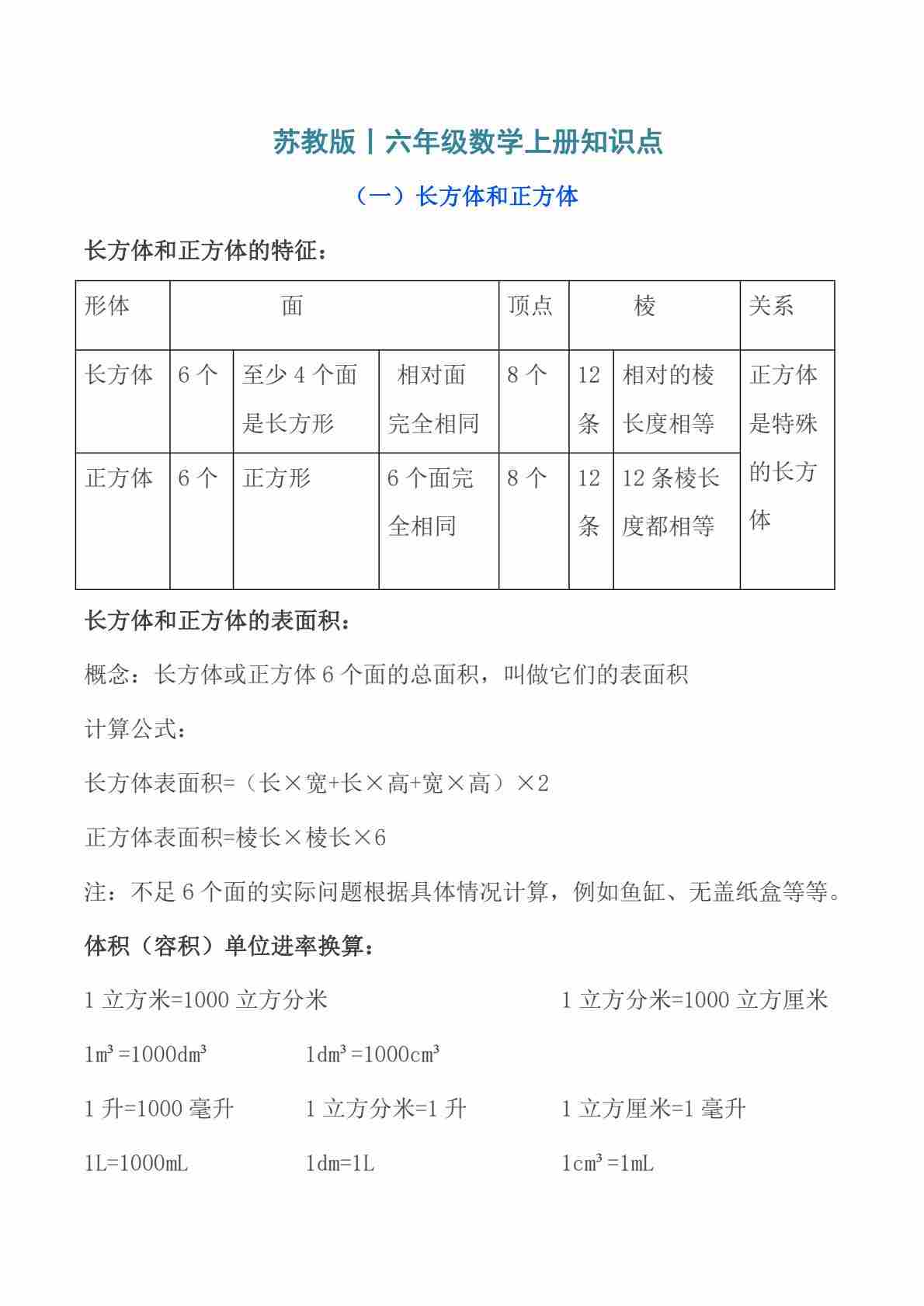 六(上)数学苏教版24秋《学霸提高班》知识梳理思维导图