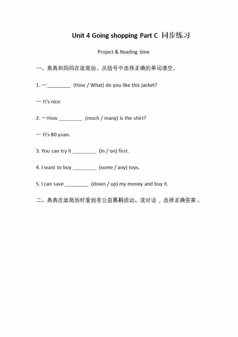 Unit 4 Going shopping Part C Project & Reading time同步练习(含答案)