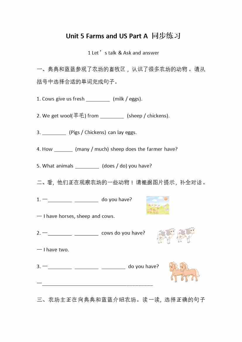 Unit 5 Farms and US Part A 同步练习 (含答案)