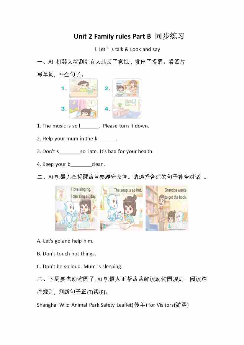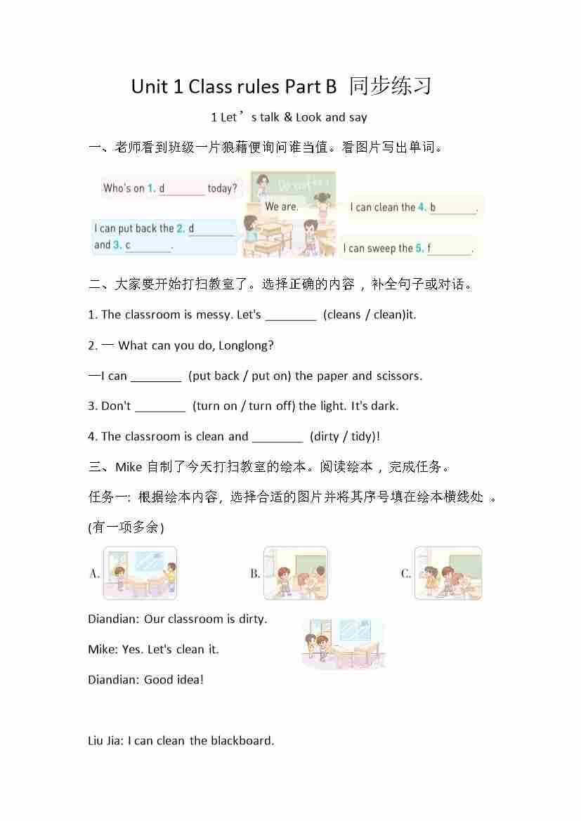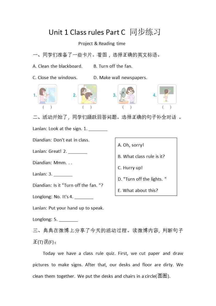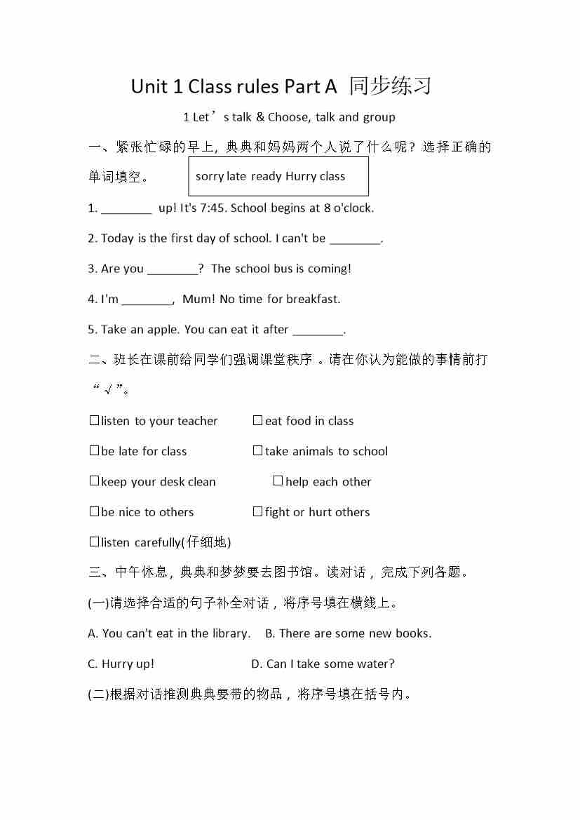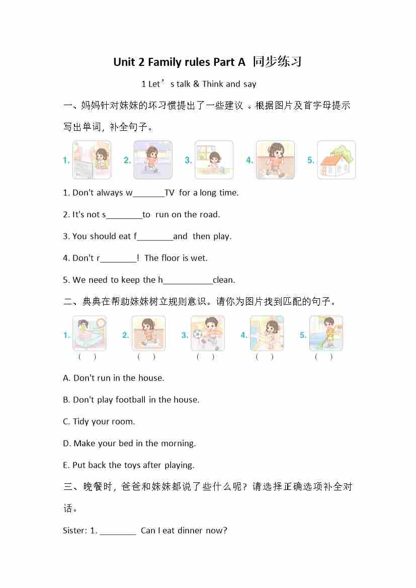 Unit 1 Class rules Part A 同步练习 (含答案)