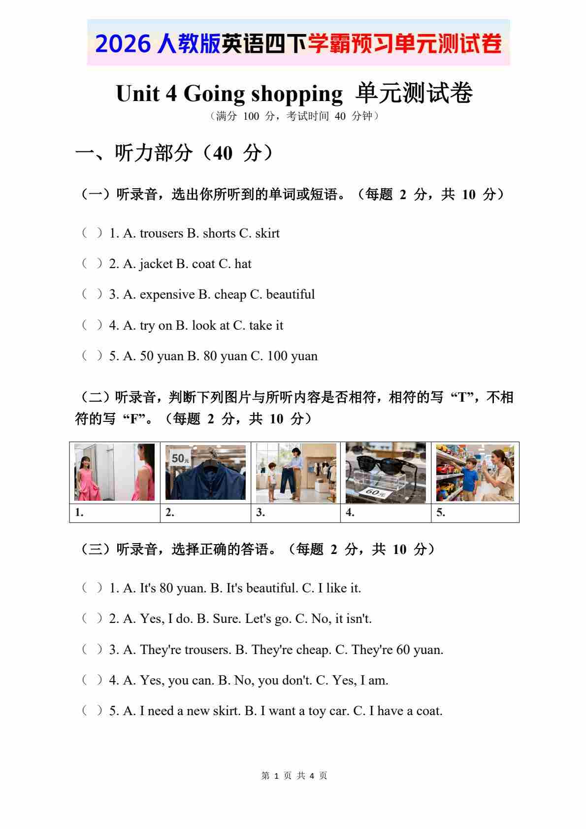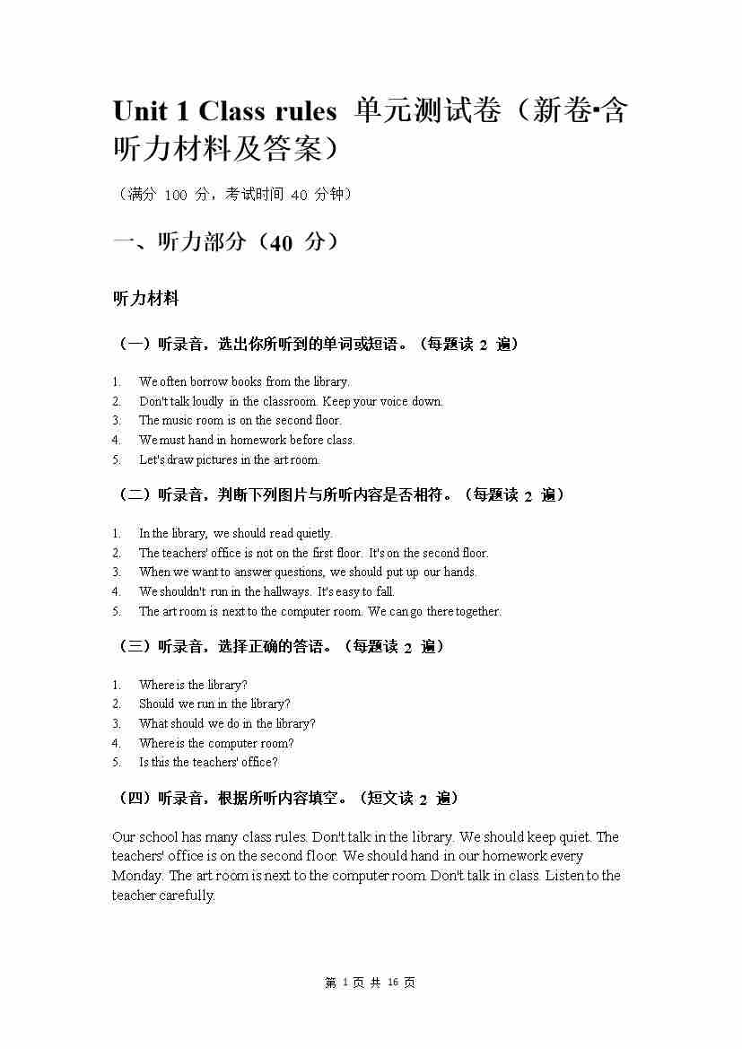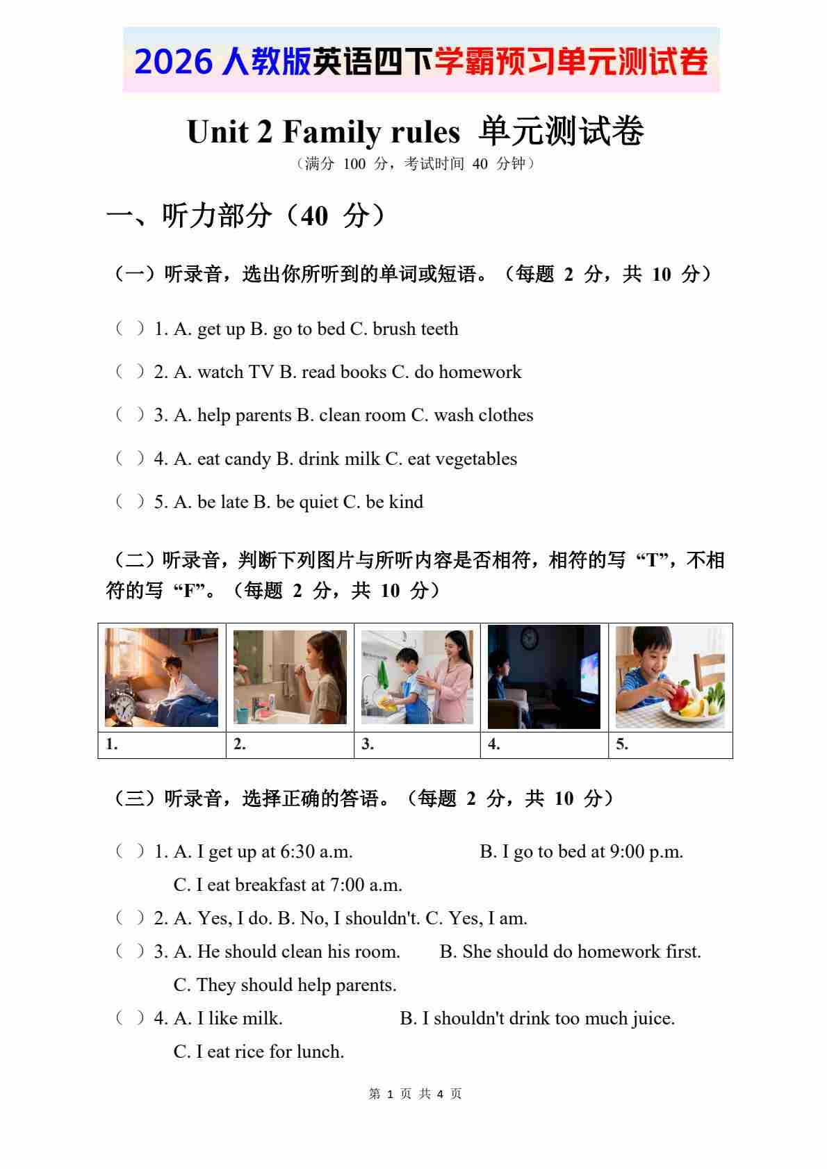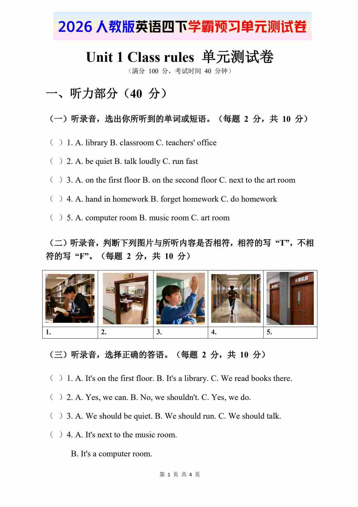 Unit 1 Class rules Part A 同步练习 (含答案)