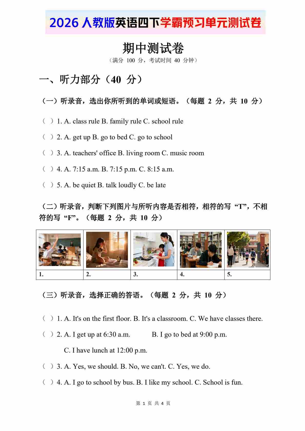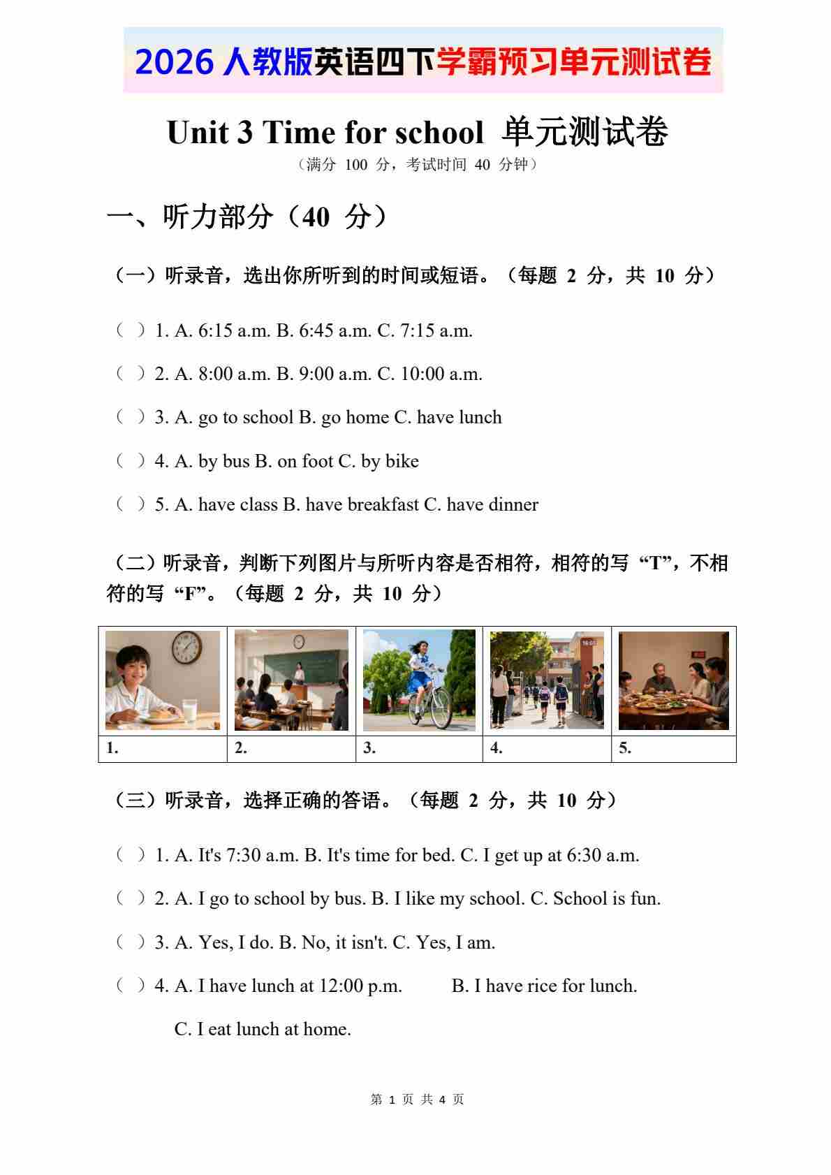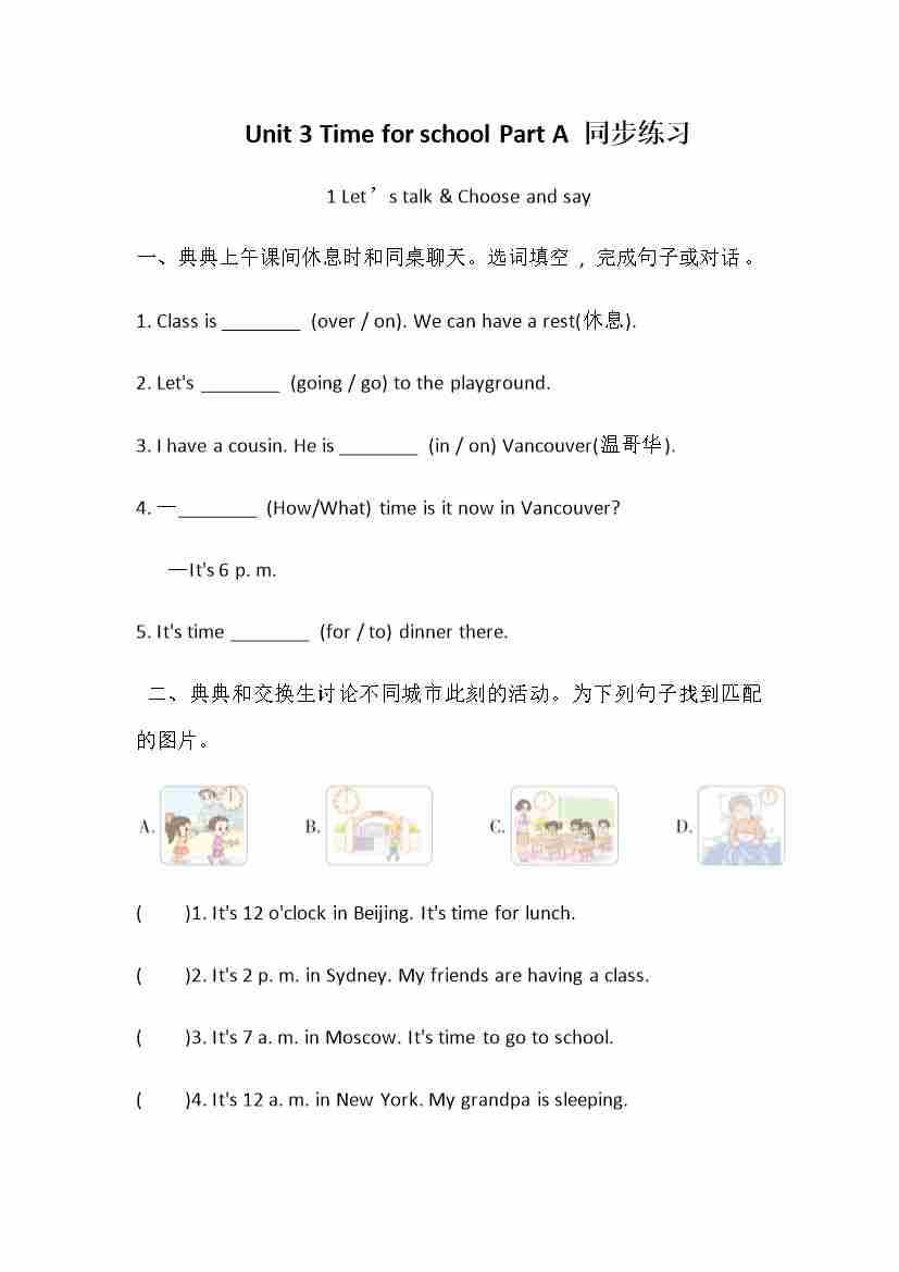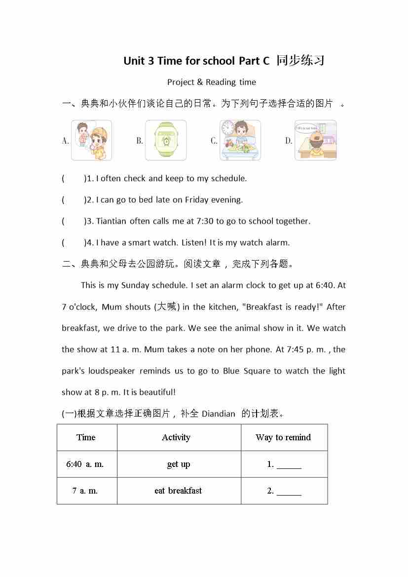 Unit 3 Time for school Part C 同步练习 (含答案)