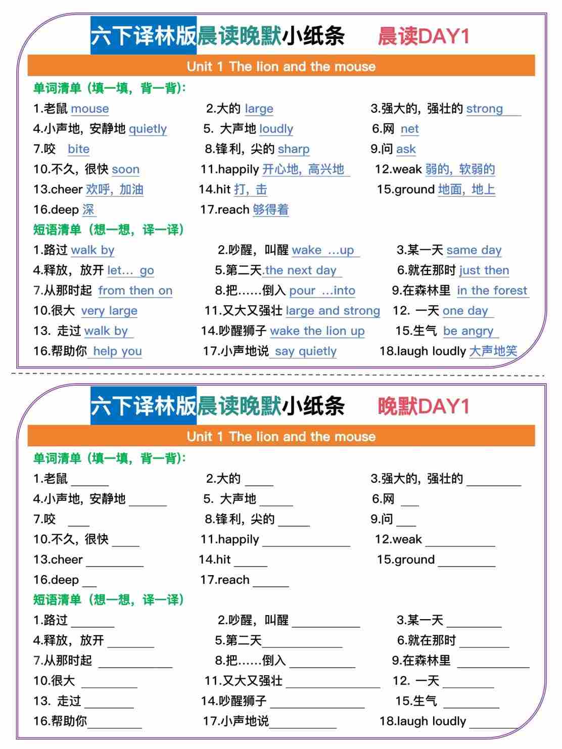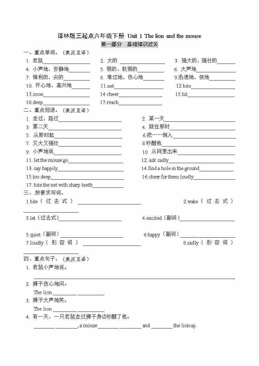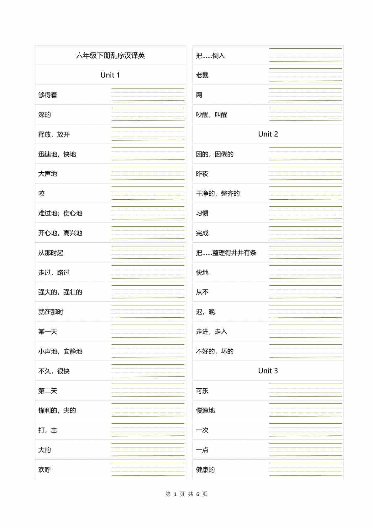 六年级下册英语单元基础知识综合能力提升练-Unit1译林版三起点(word版,含答案)