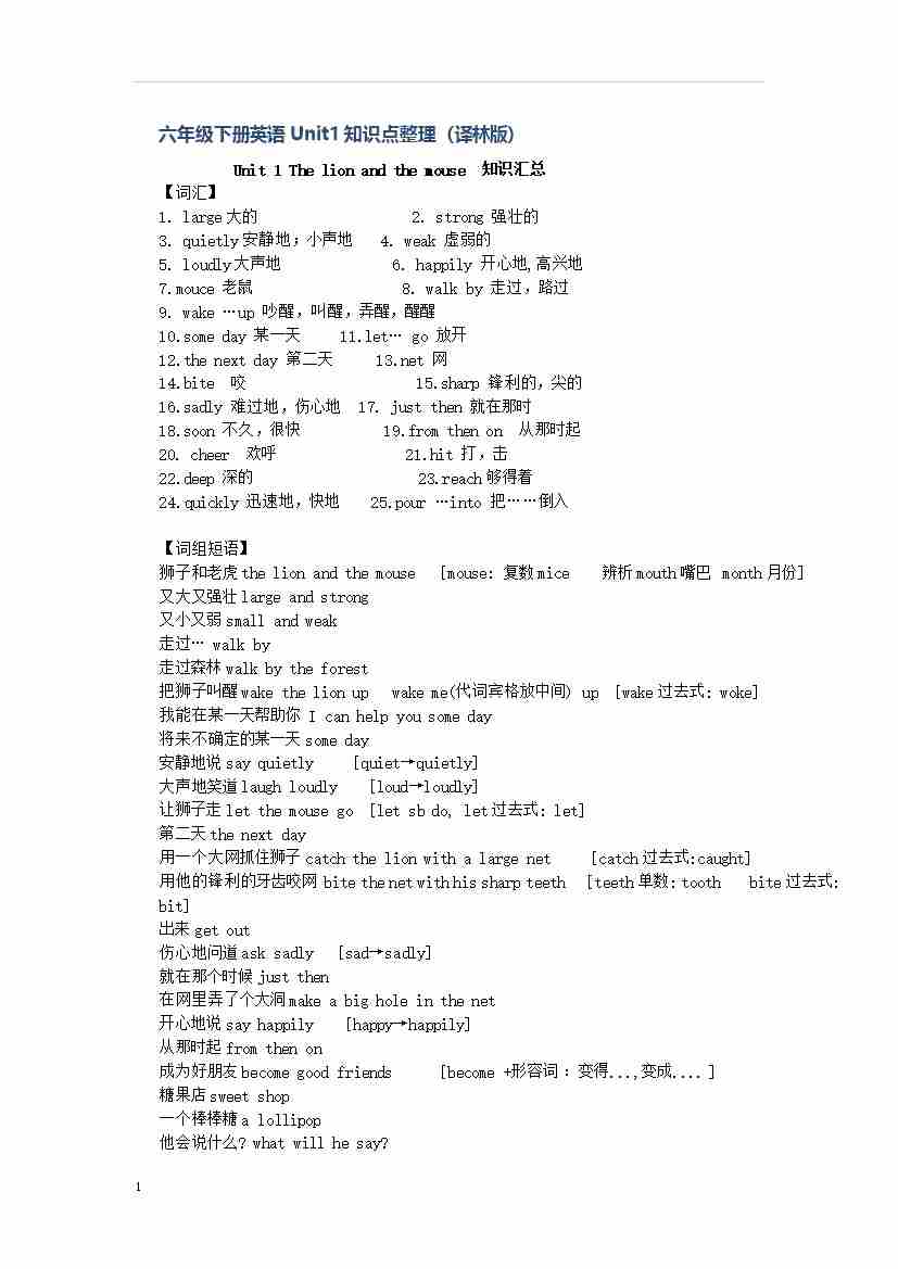 单元知识点归纳-译林版(三起)六年级下册 (1)