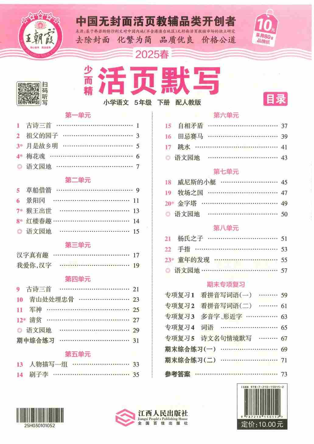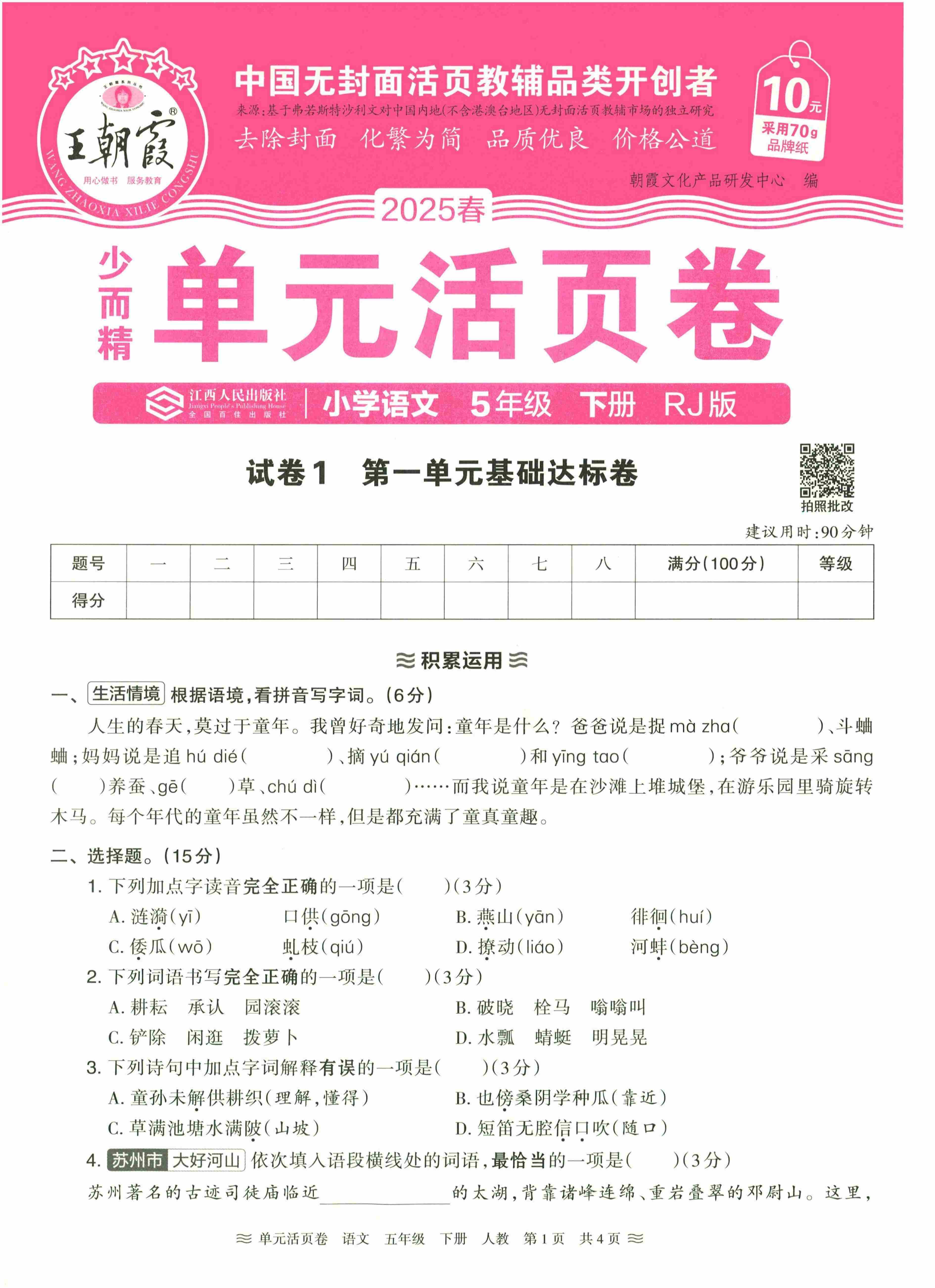 五年级语文下册人教版25春《王朝霞单元活页卷》(A4版)