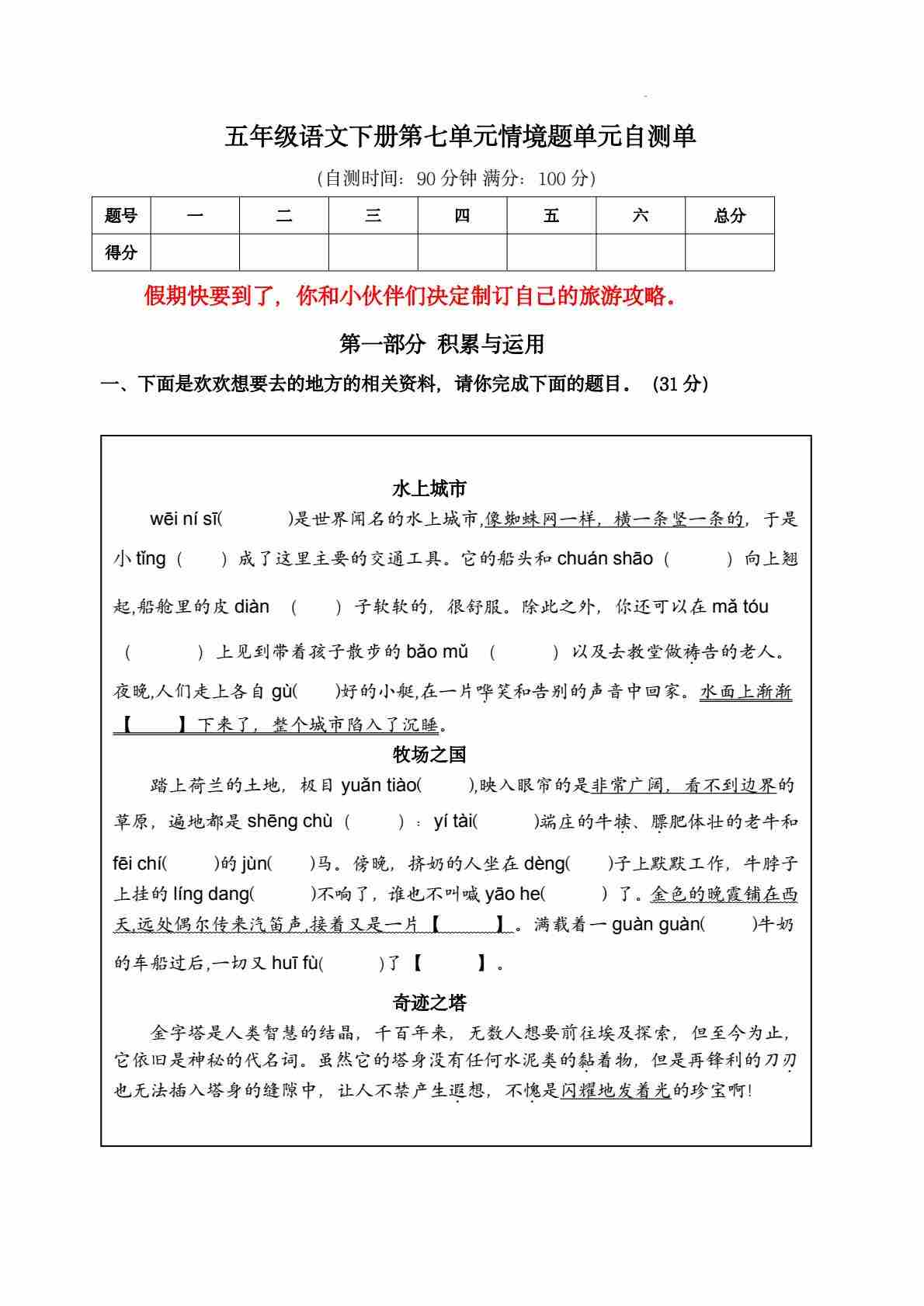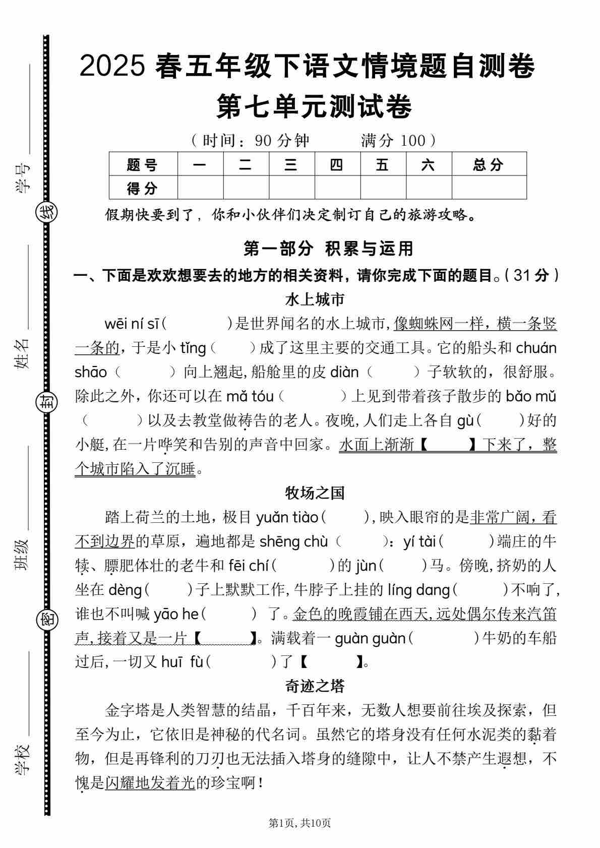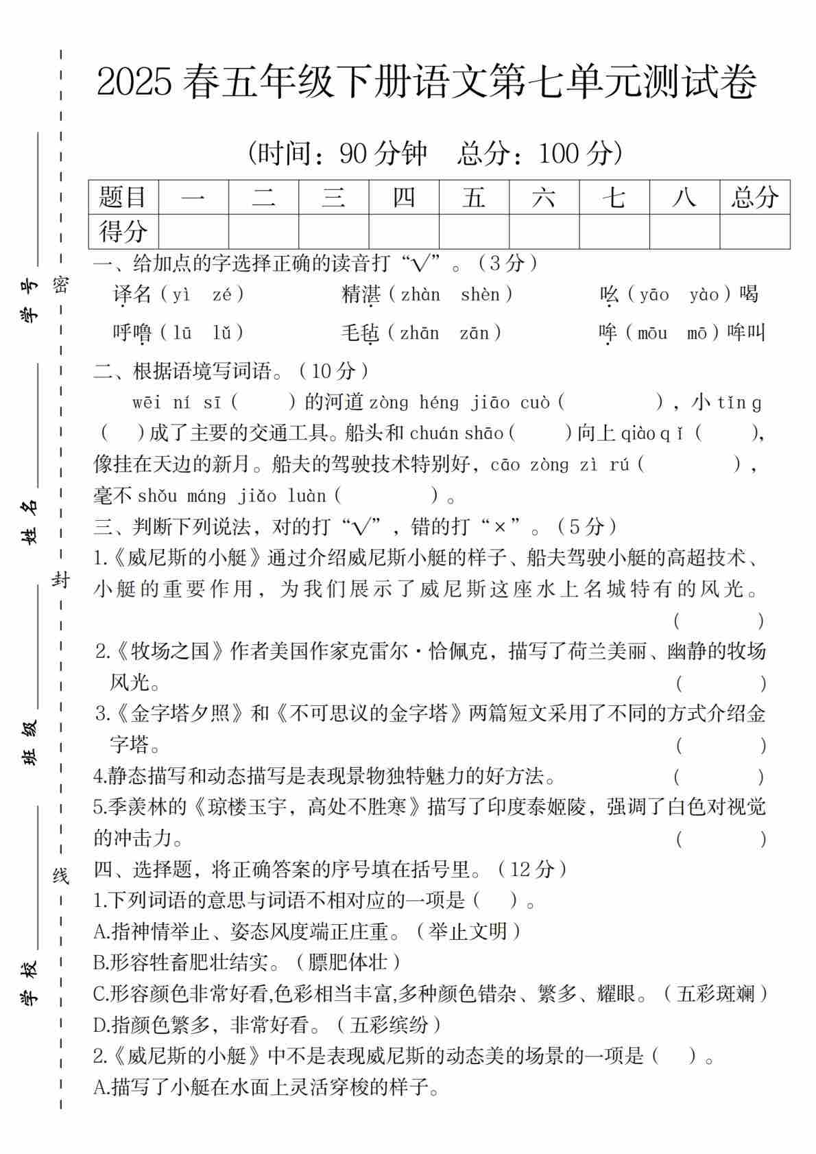 2025春五年级下册语文第七单元测试卷1