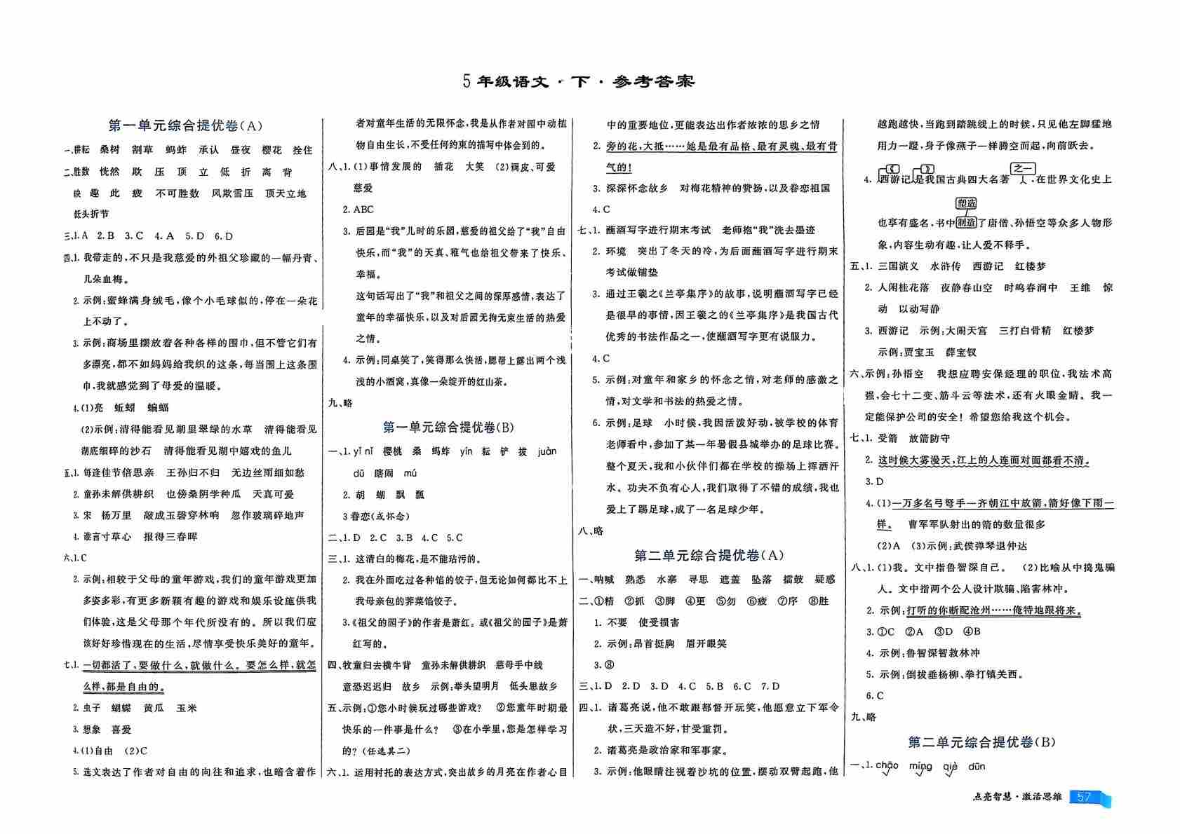 五年级语文下册人教版25春《亮点激活提优大试卷》答案