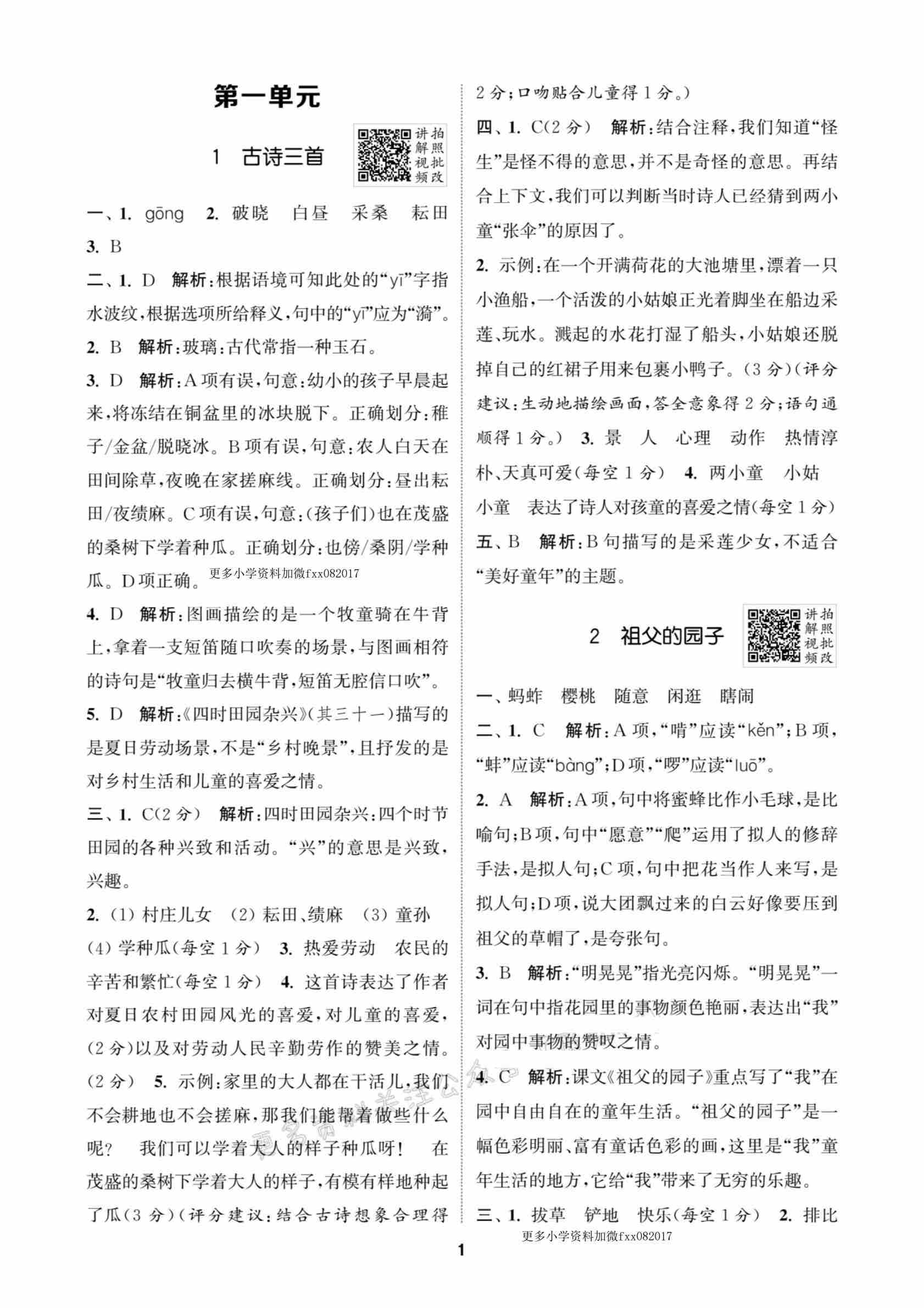 25春5星学霸5下语文答案