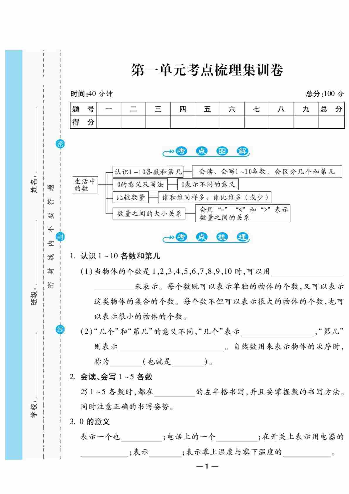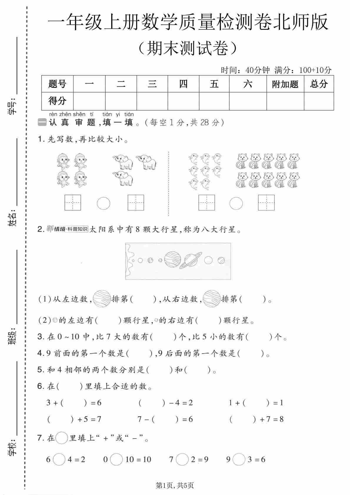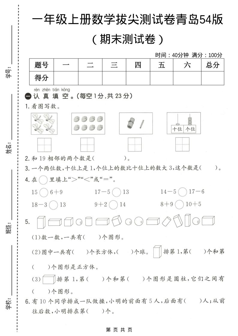 一年级(上)数学 期末拔尖测试卷1《青岛54版》
