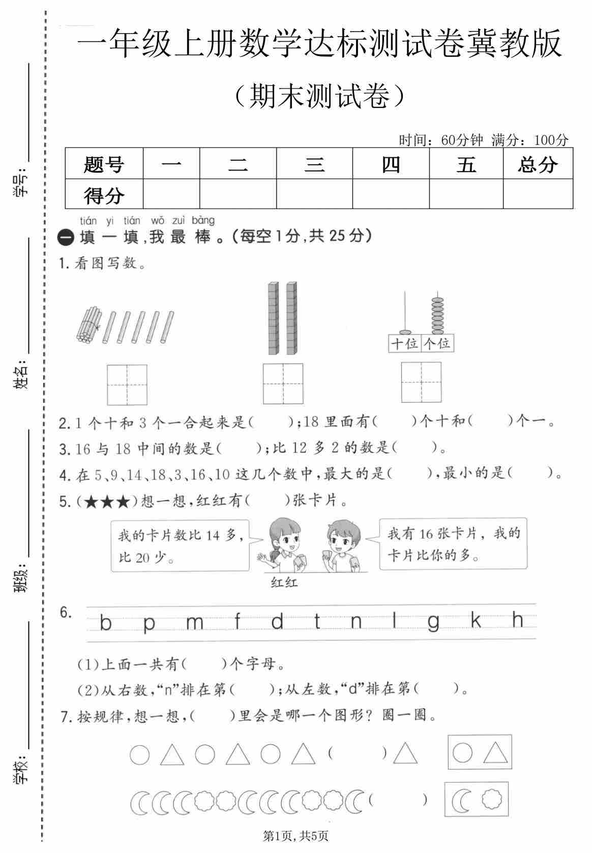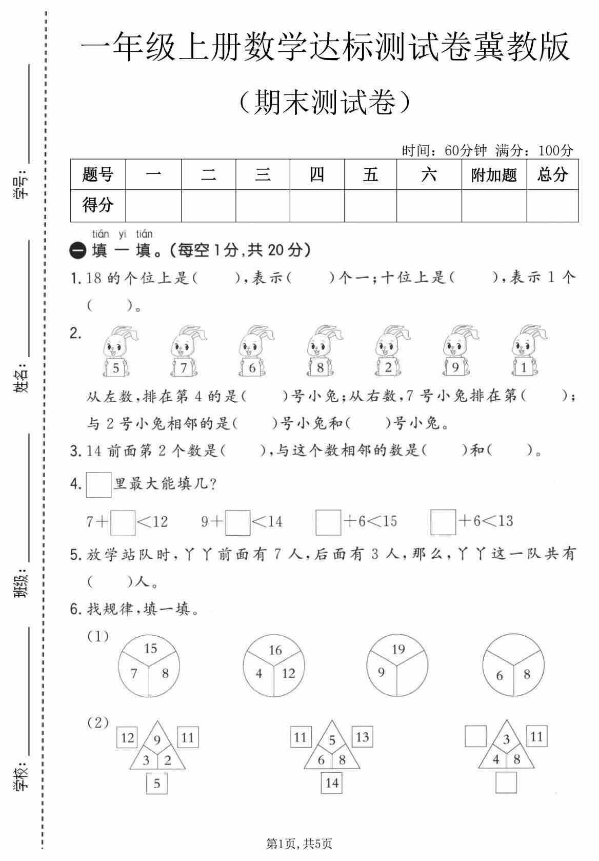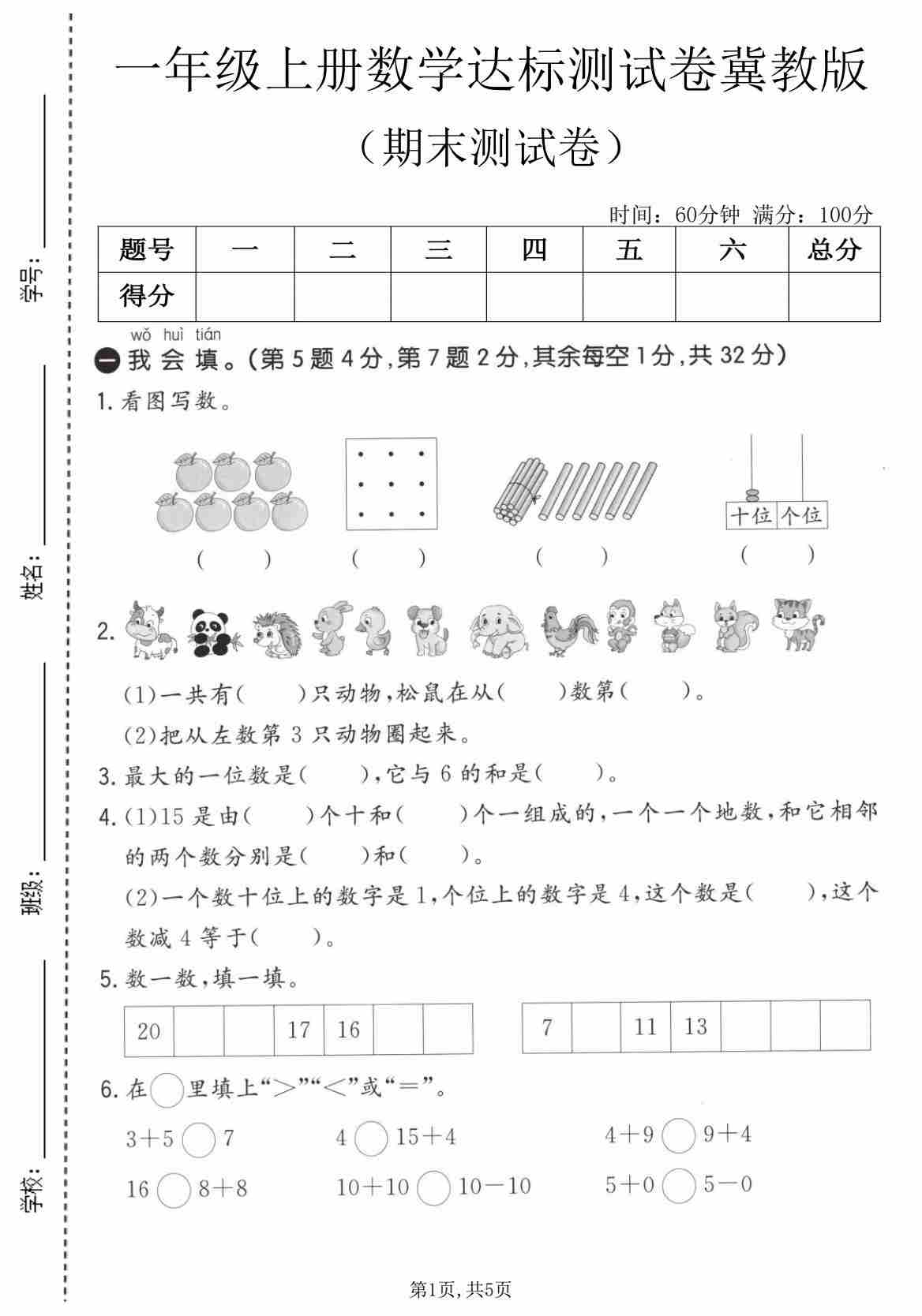 一年级(上)数学 期末达标测试卷1《冀教版》