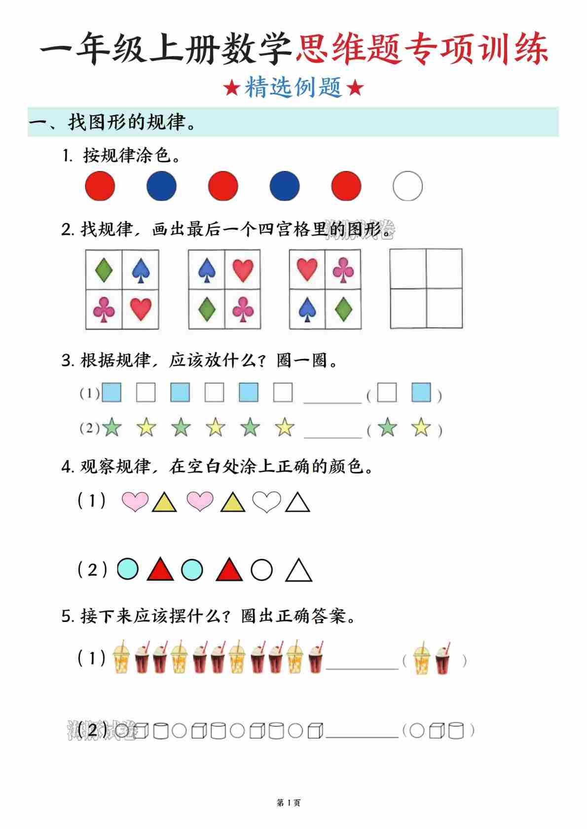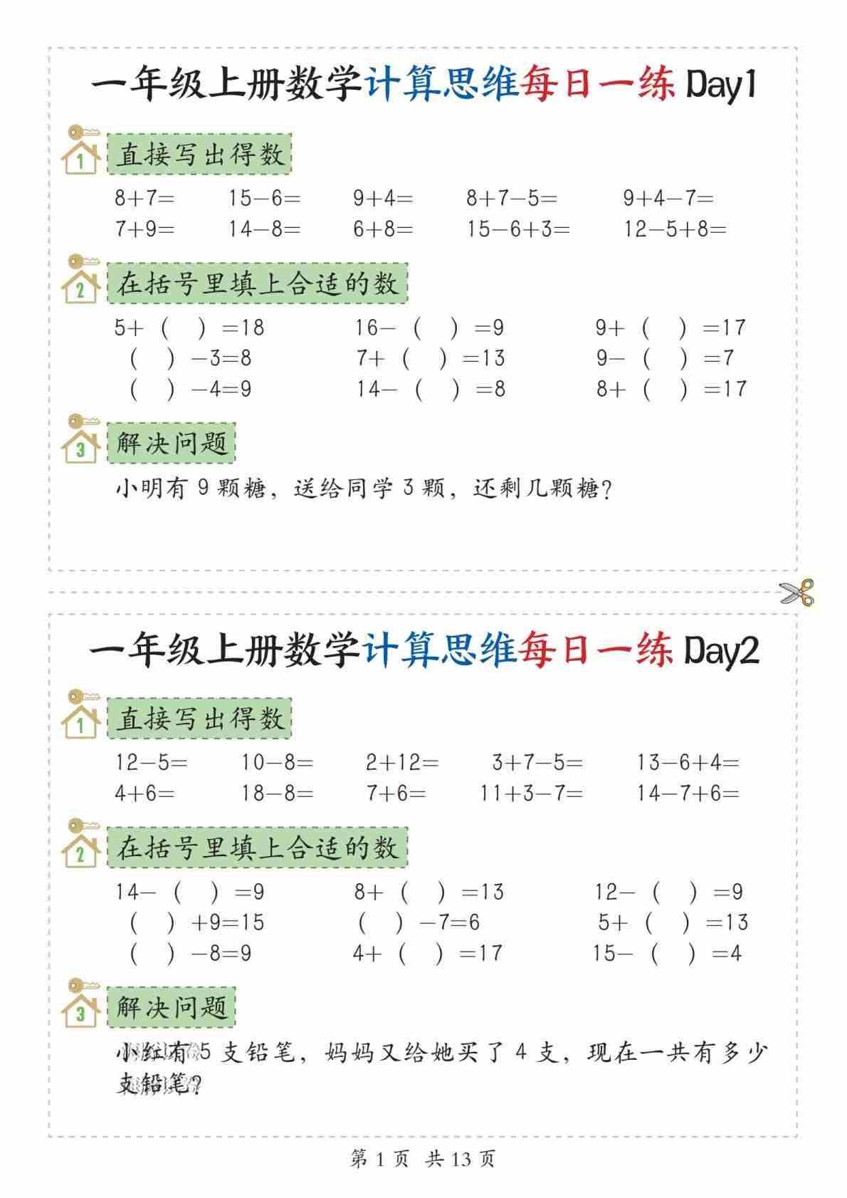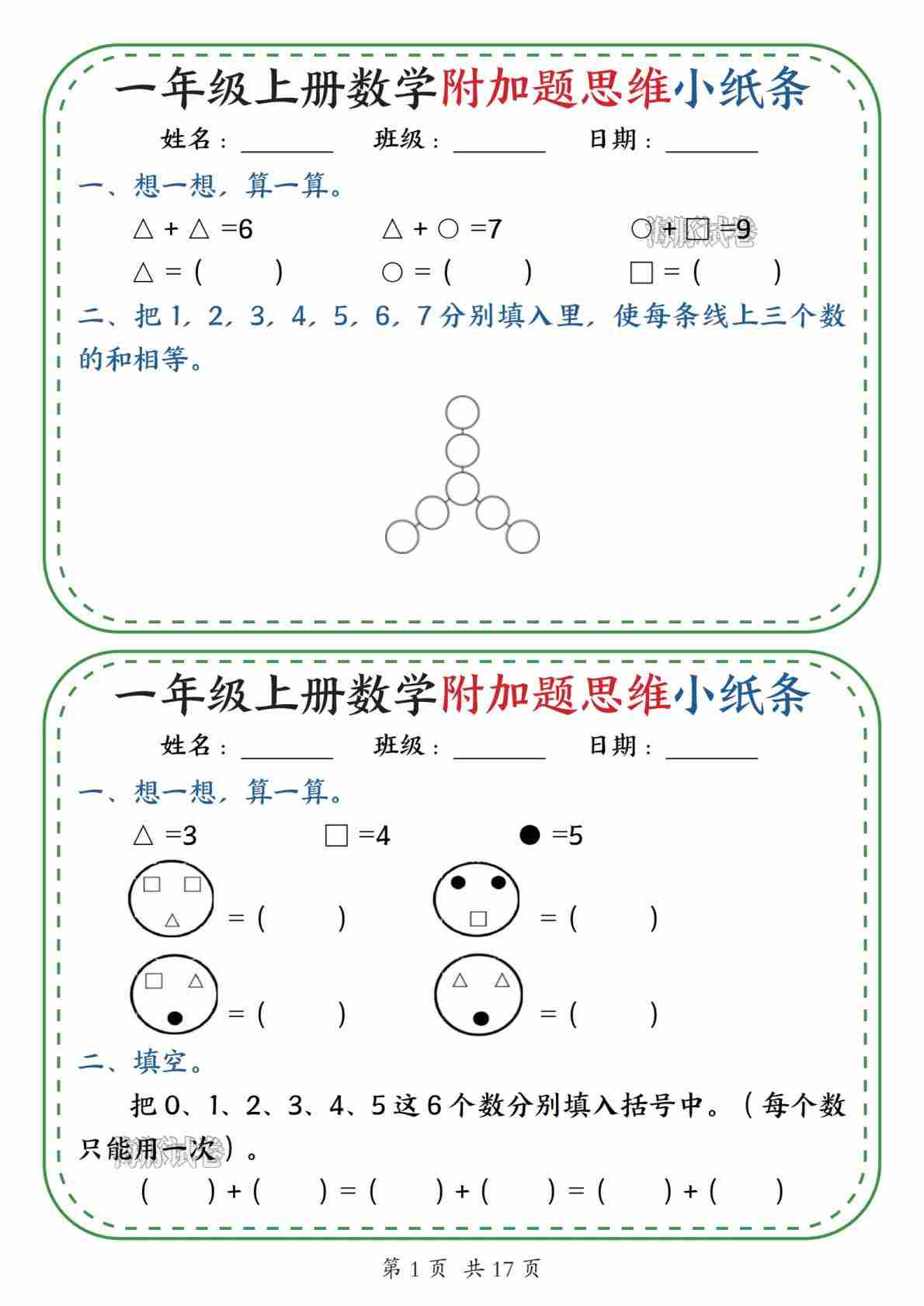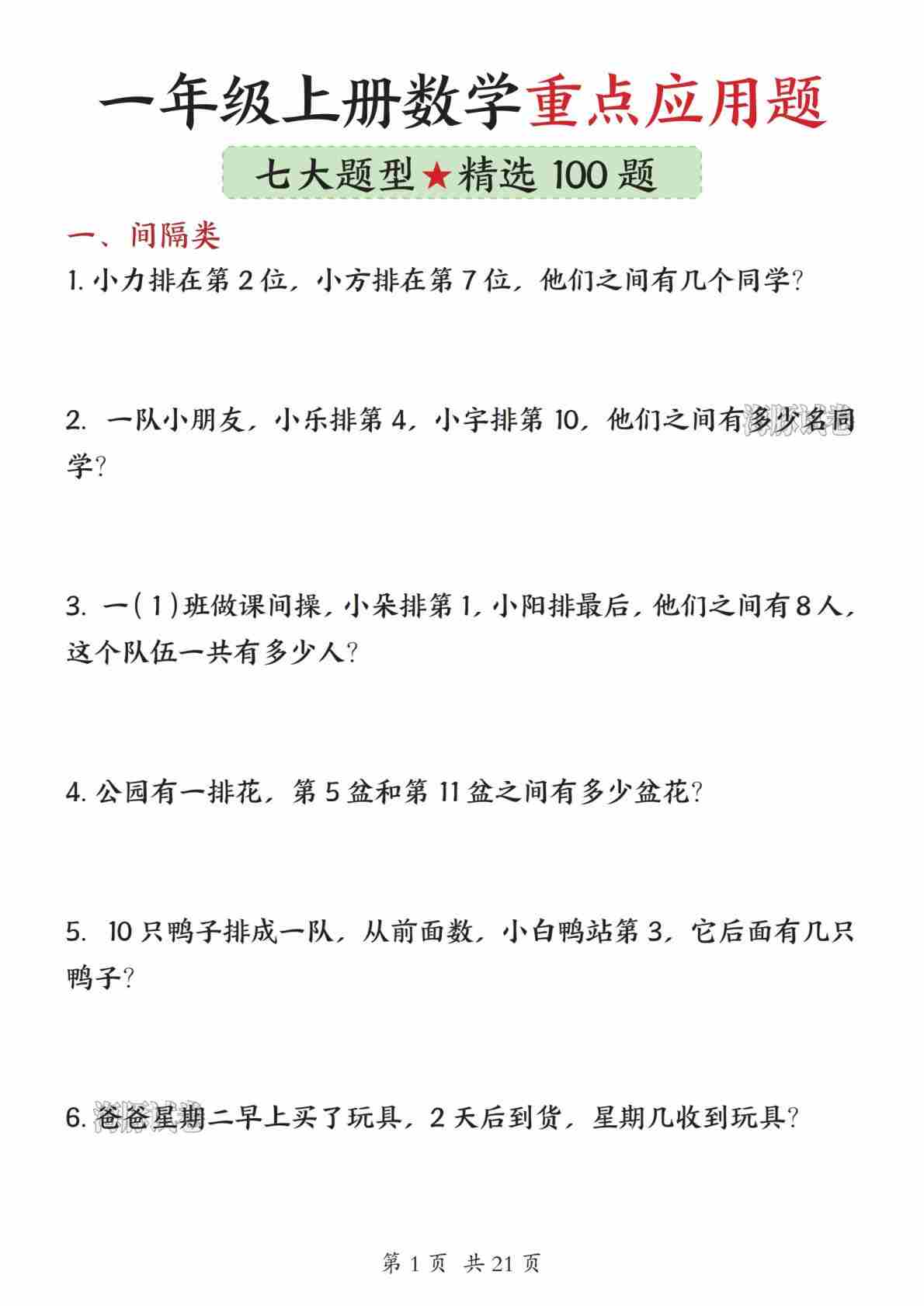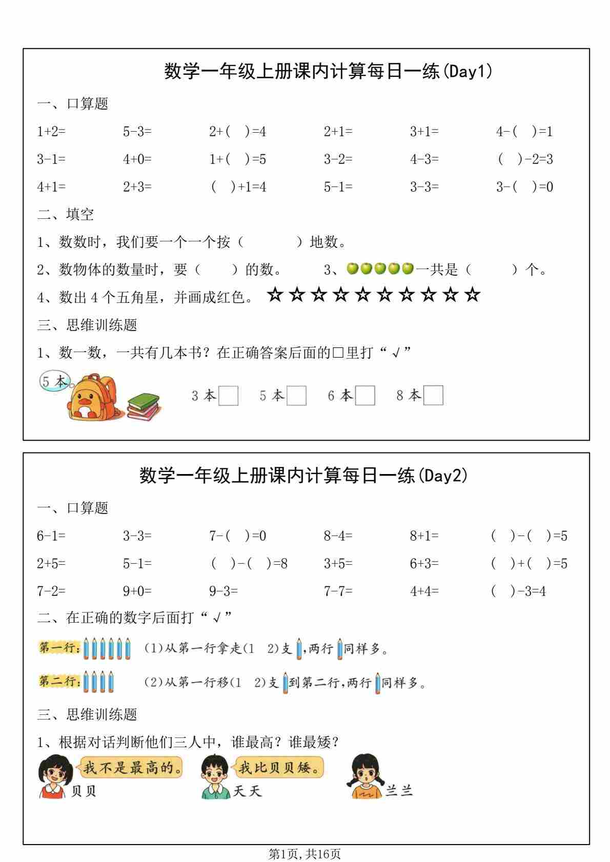 一年级(上)数学 期末应用题总复习30天冲刺训练