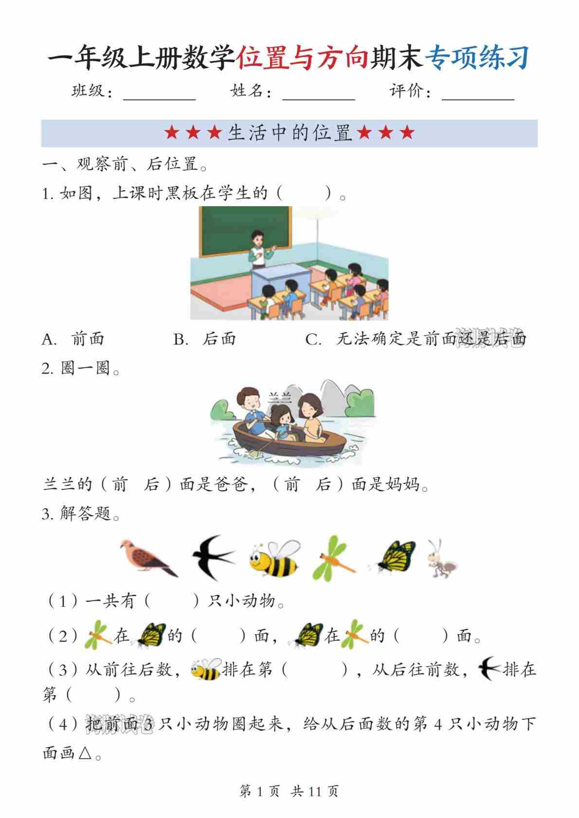 一年级(上)数学 期末拔尖测试卷3《苏教版》