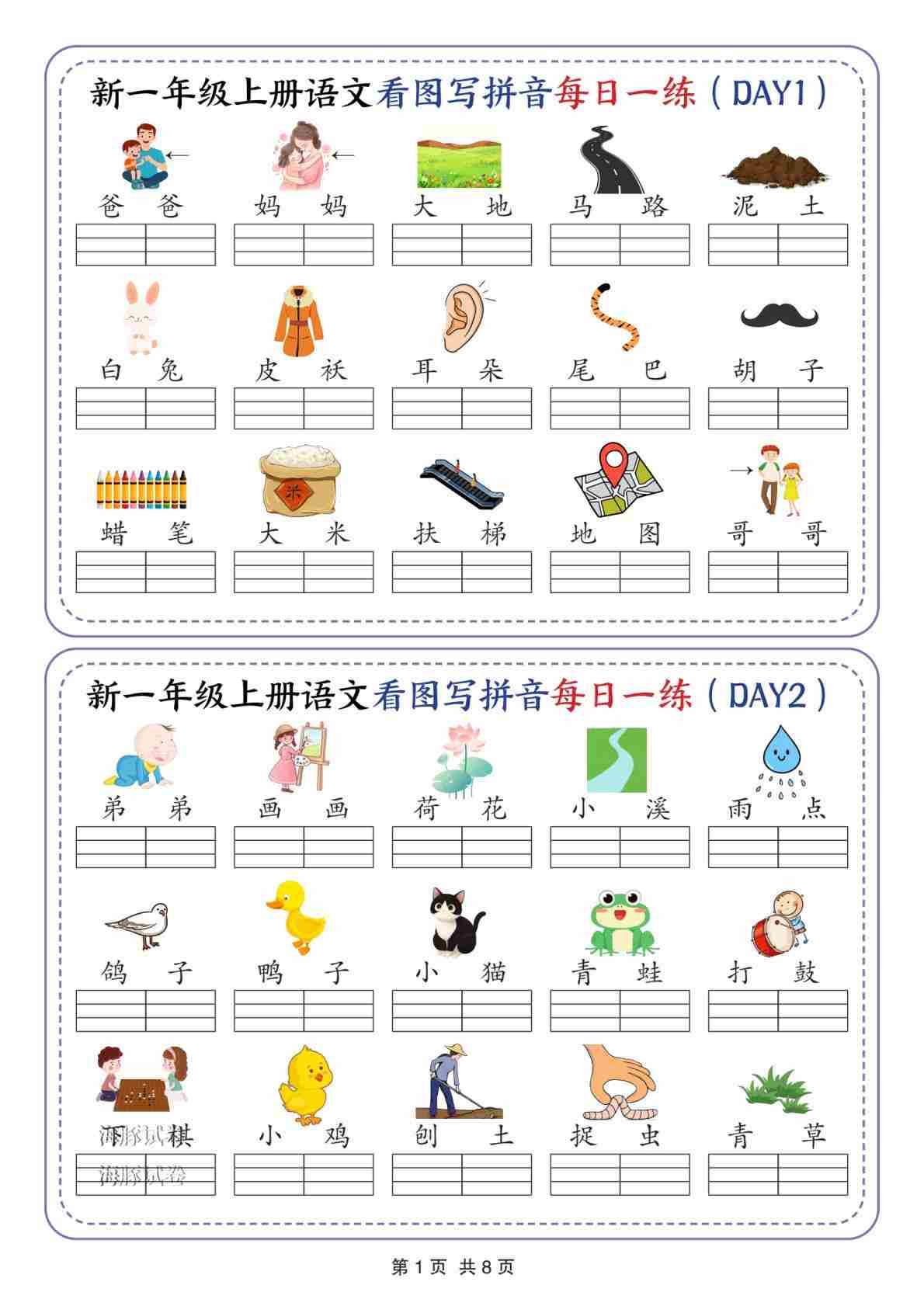 一年级(上)语文看图写拼音每日一练