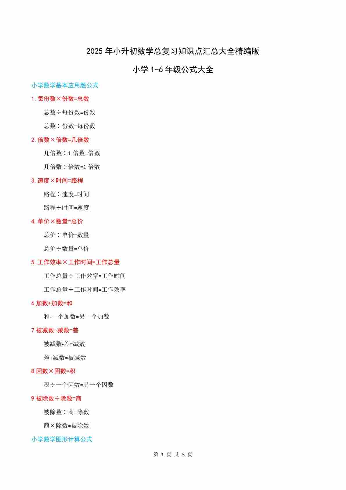 专题06 小学数学公式大全(常见公式)-2025年小升初数学总复习知识点汇总大全精编版(纯知识点)
