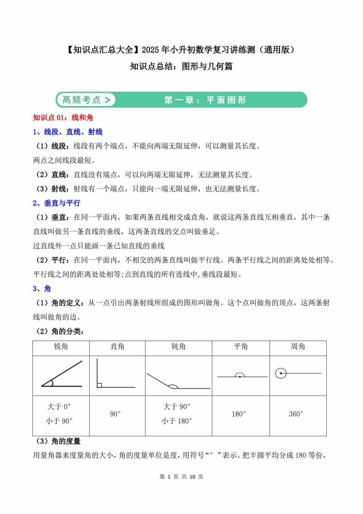 知识点总结:图形与几何篇-2025年小升初数学复习讲练测(通用版)