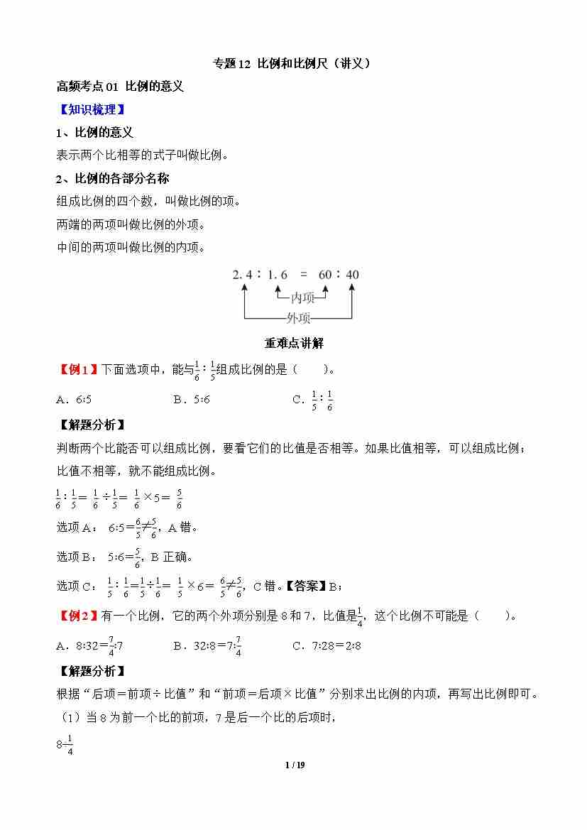 专题11 比和比的应用:化简比与求比值计算(练习)