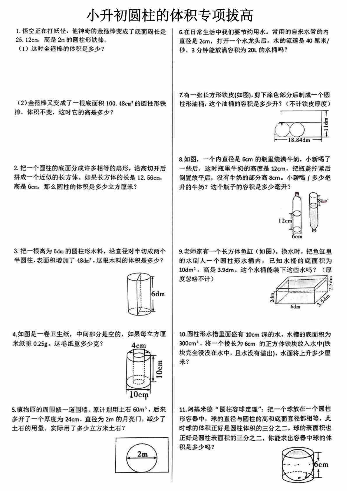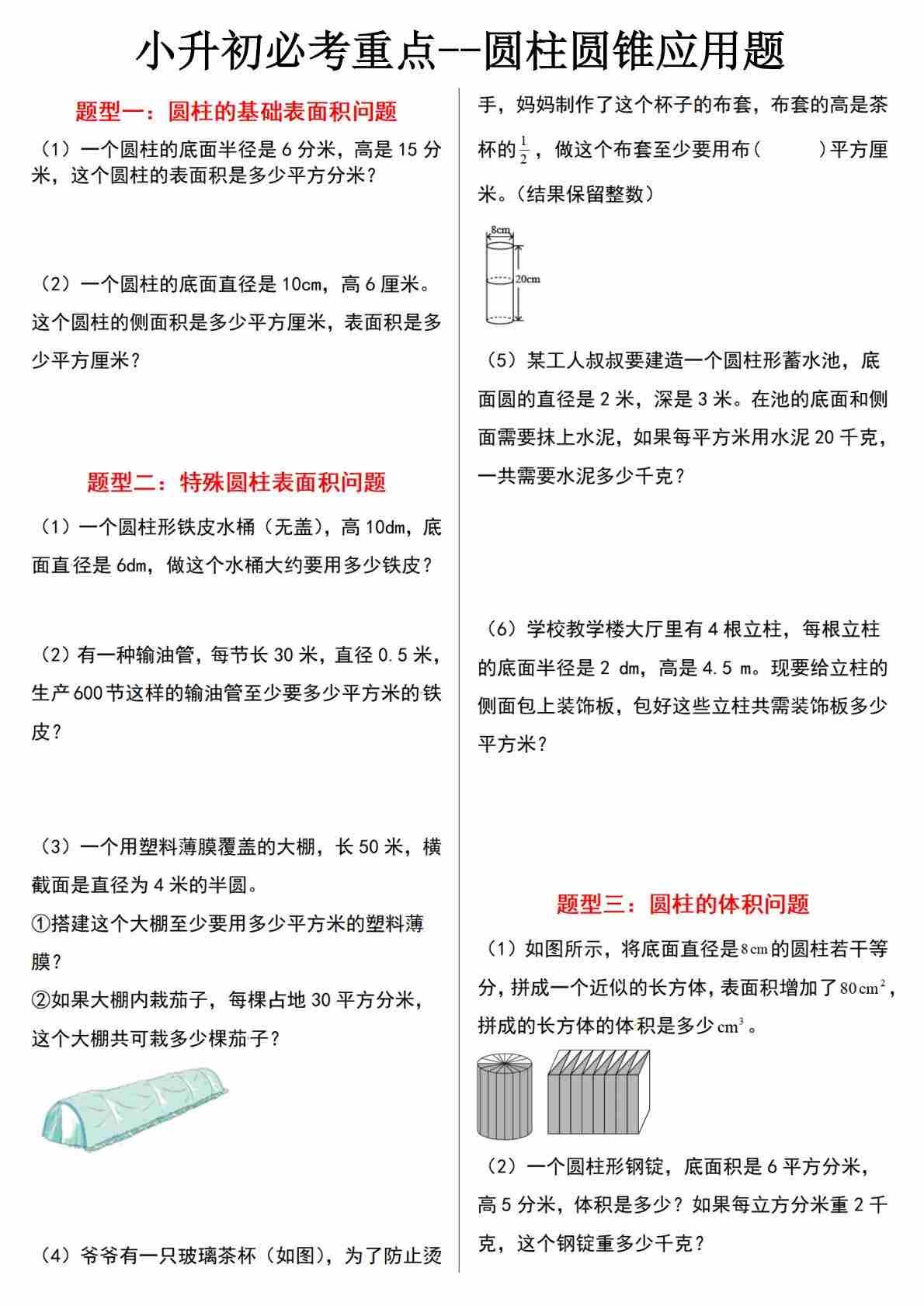 小升初数学【圆柱与圆锥常见应用题】
