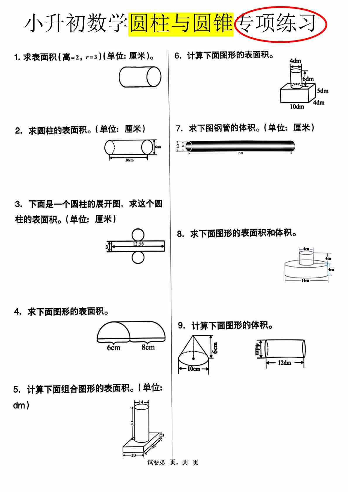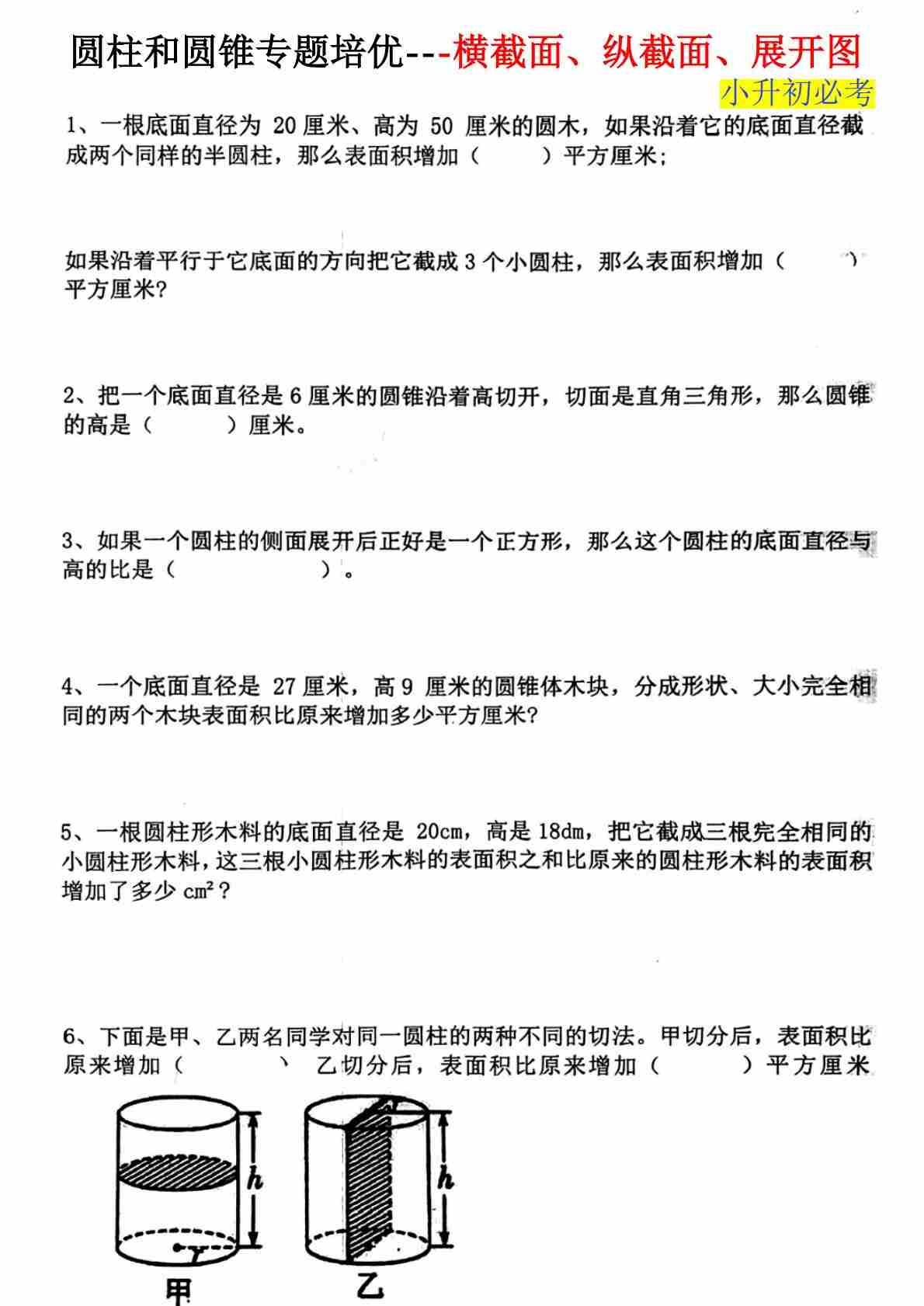 小升初数学【圆柱圆锥专项】