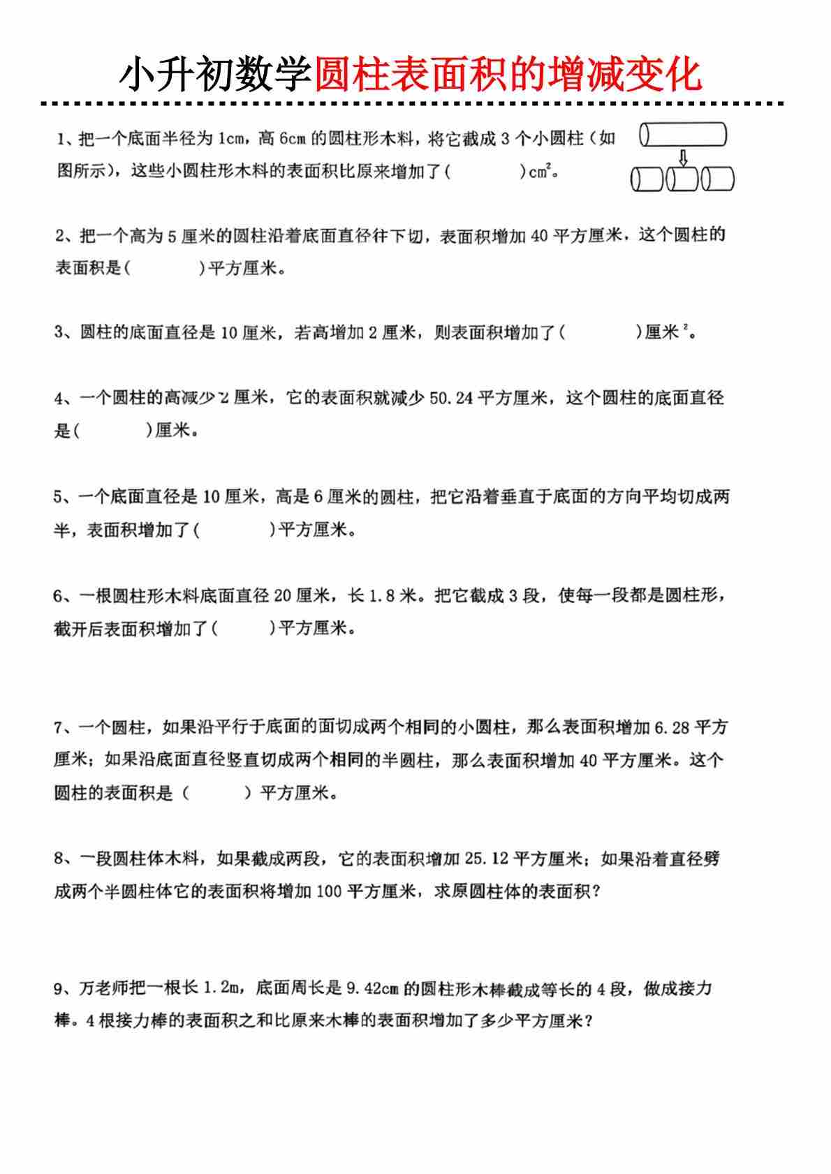 小升初数学【圆柱表面积的增减变化】