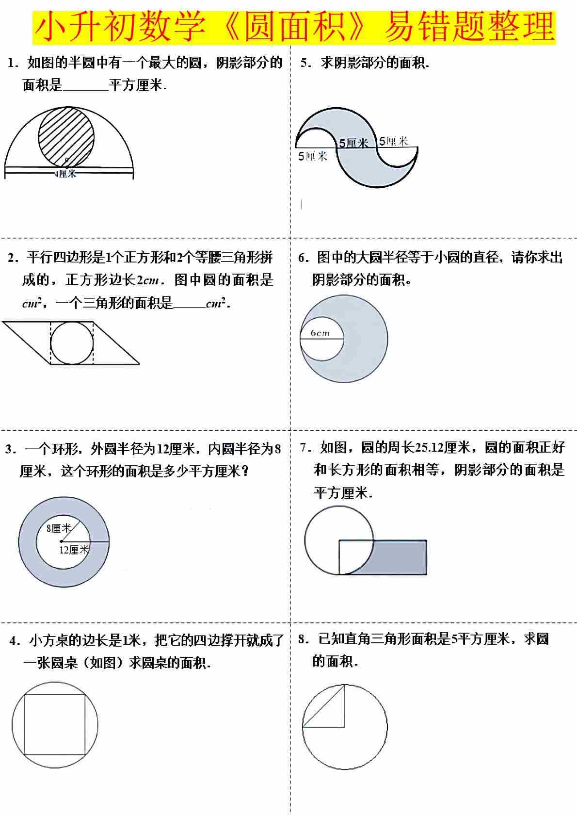 小升初数学【圆面积易错题整理】