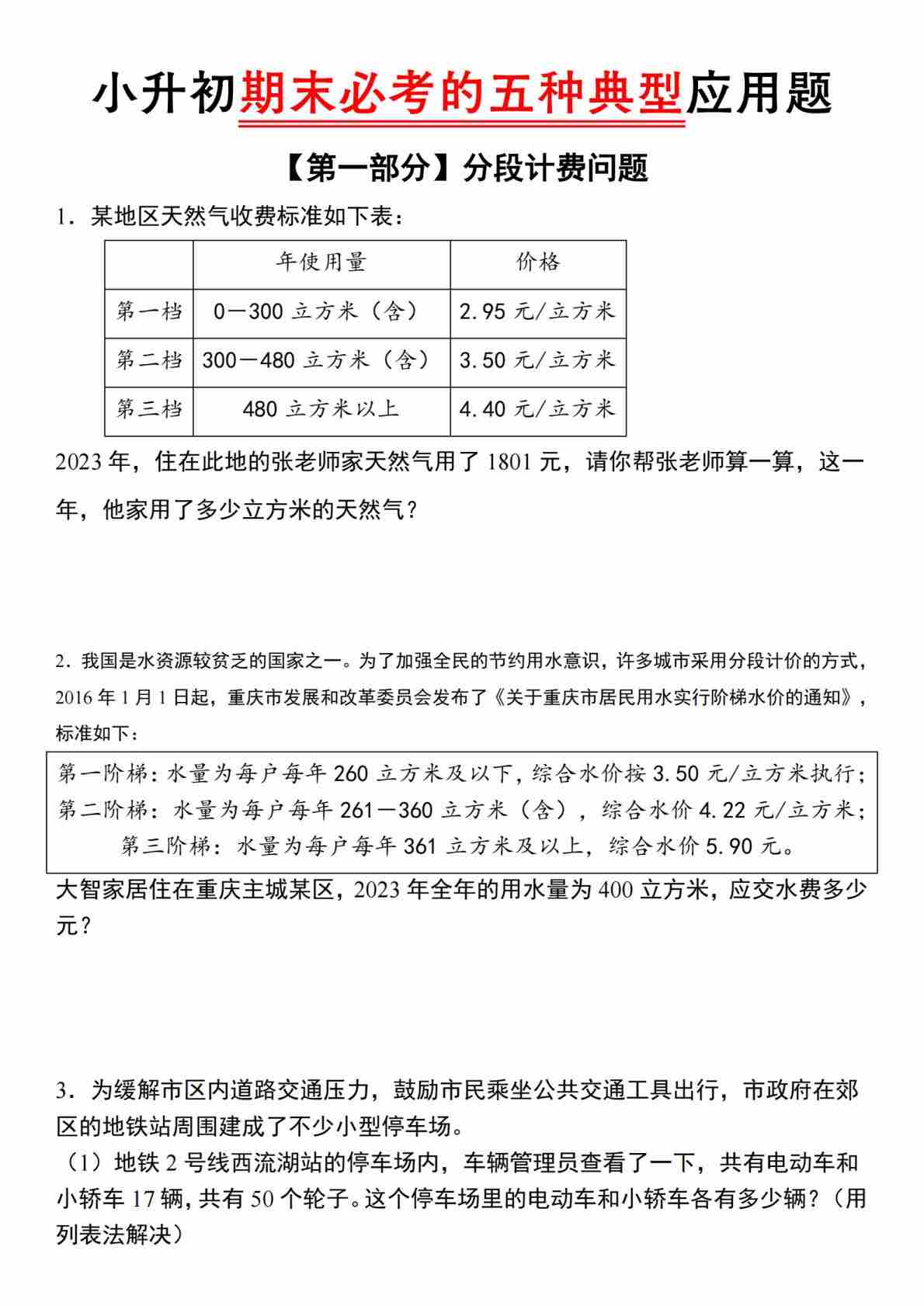 小升初数学【期末必考的五种典型应用题】