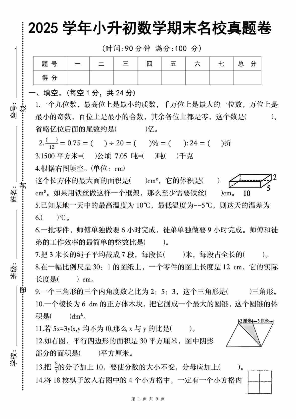 小升初数学人教版【真题汇编:填空题】