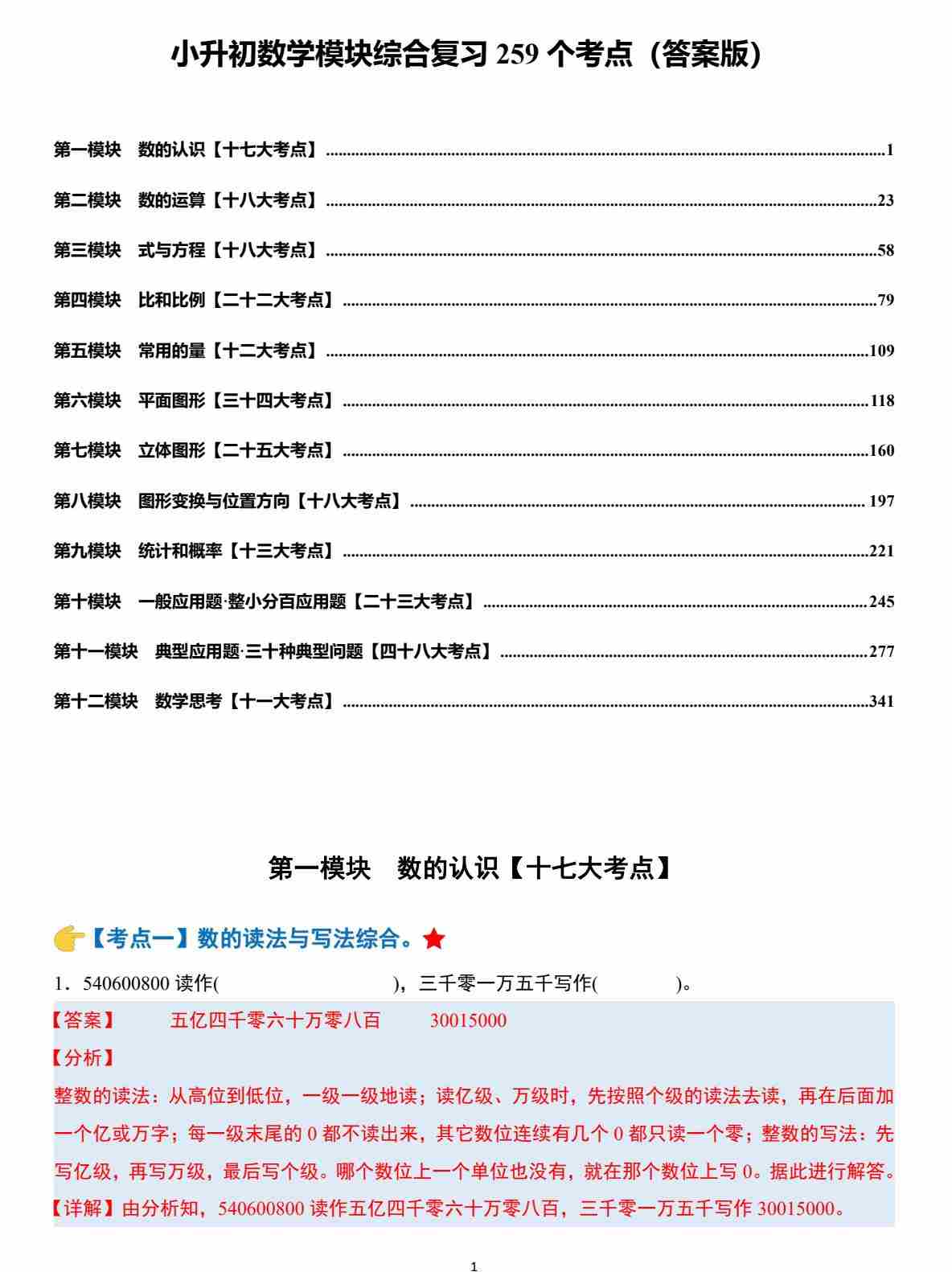 小升初数学模块综合复习259个考点(答案版)