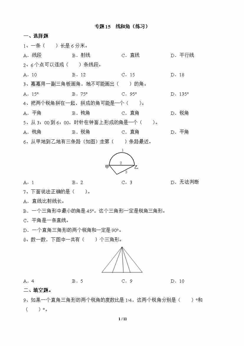 专题15 线和角(练习)