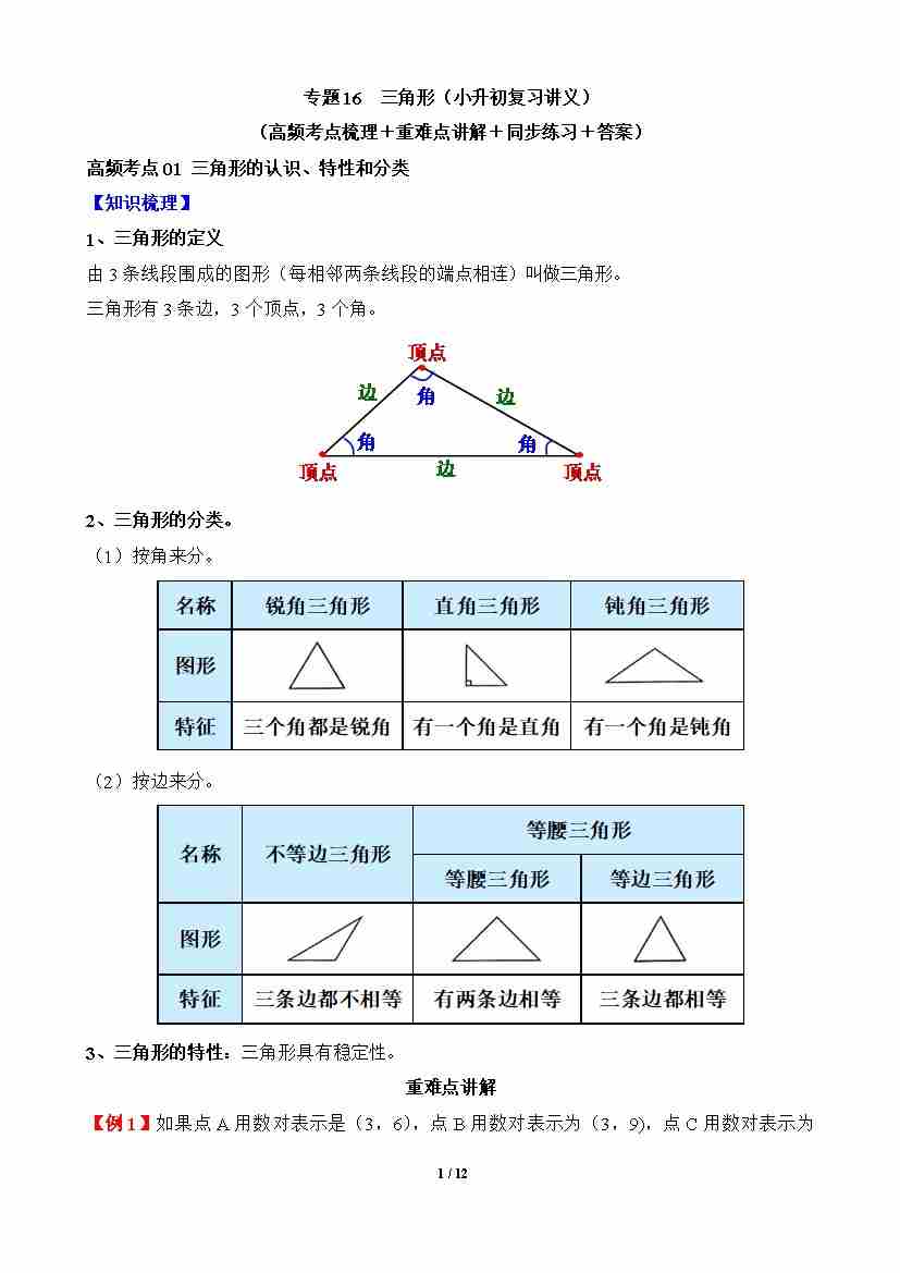 专题16 三角形(讲义)
