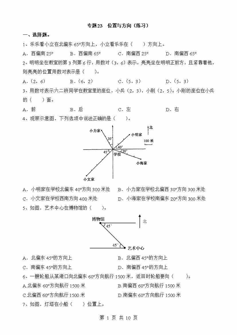 专题23 位置与方向(练习)