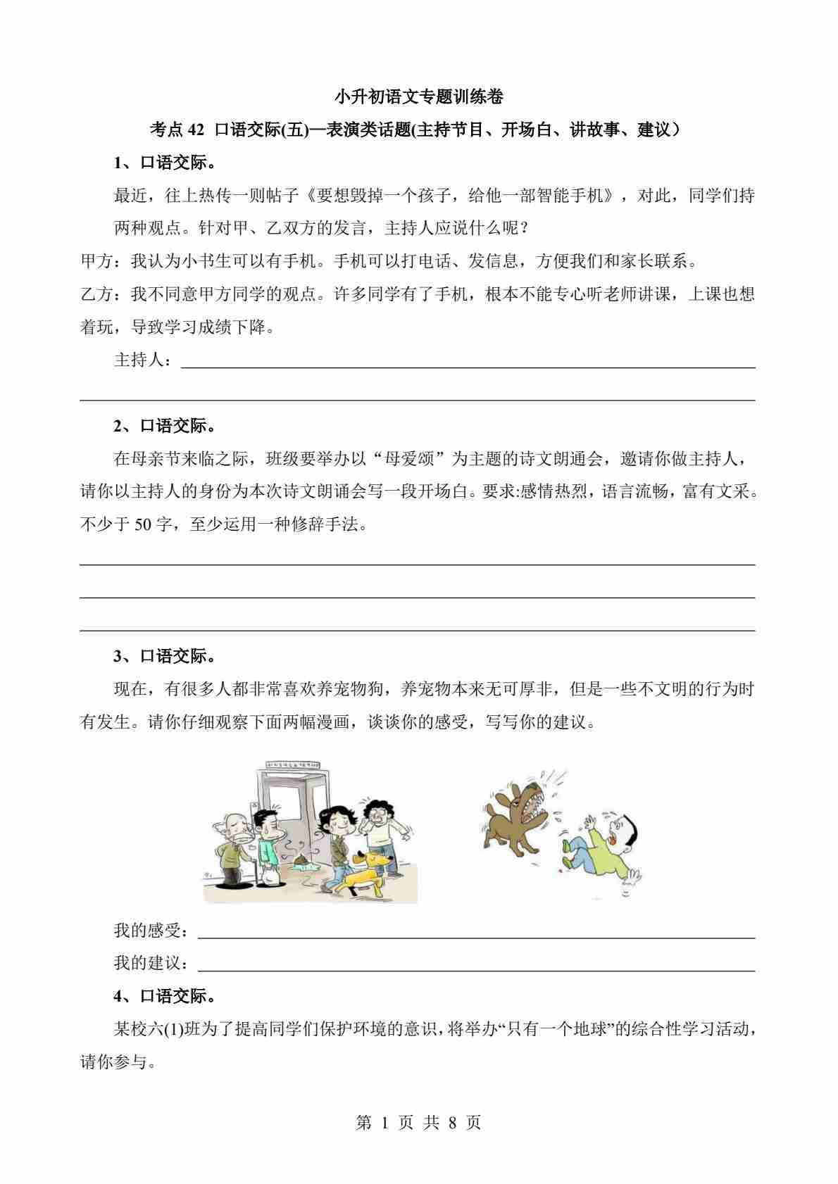 考点42 口语交际-表演类话题(主持节目、开场白、讲故事、建议)