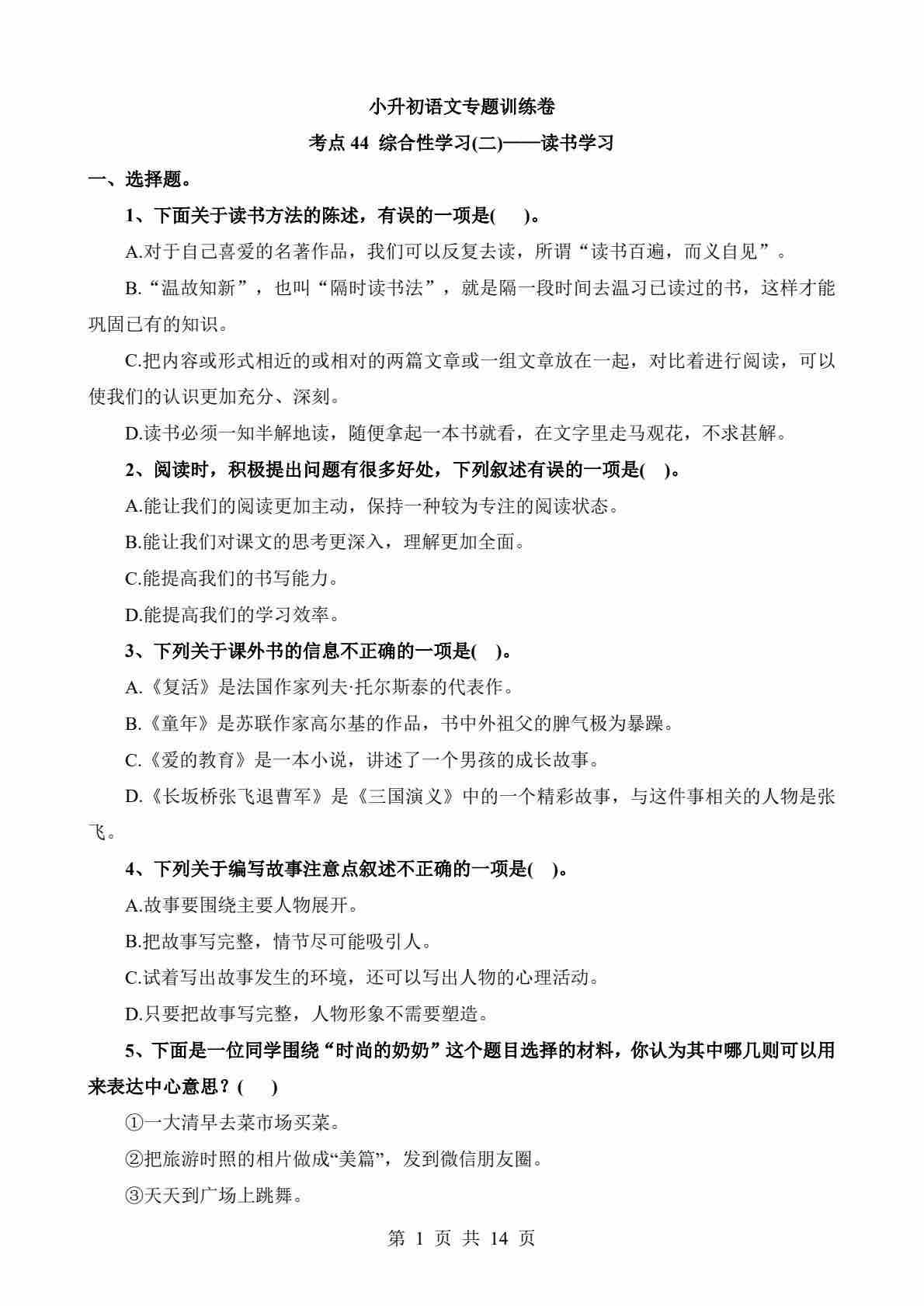 考点44 综合性学习-读书学习