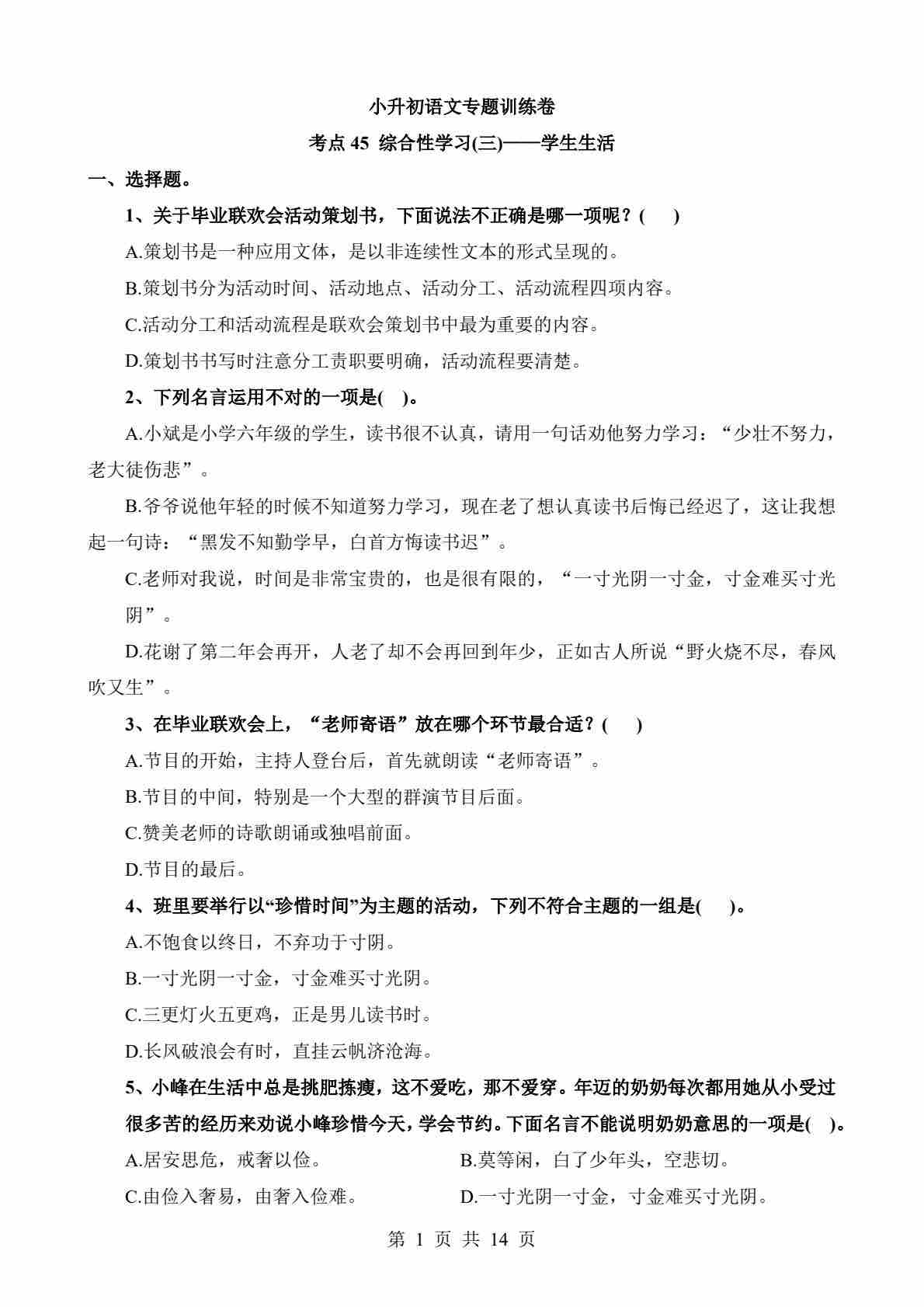 考点45 综合性学习-学生生活