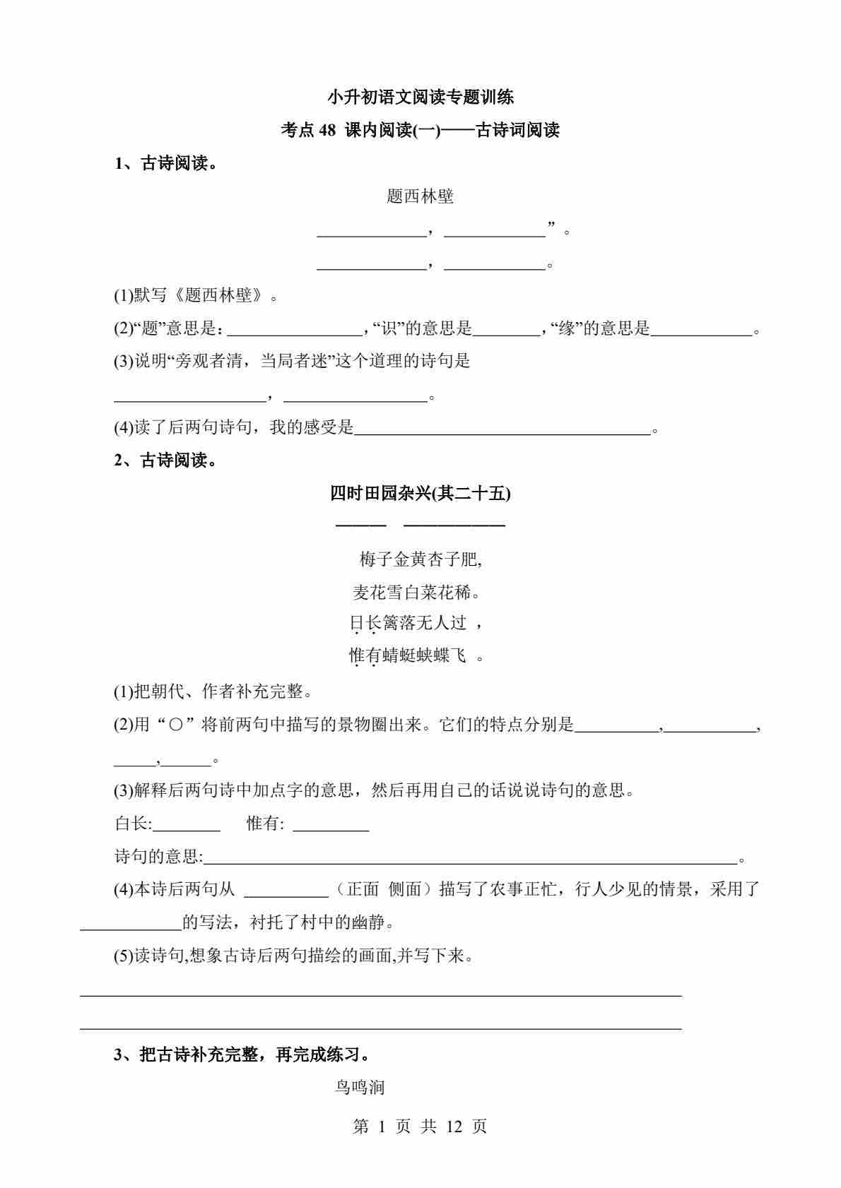 考点48 课内-古诗词阅读
