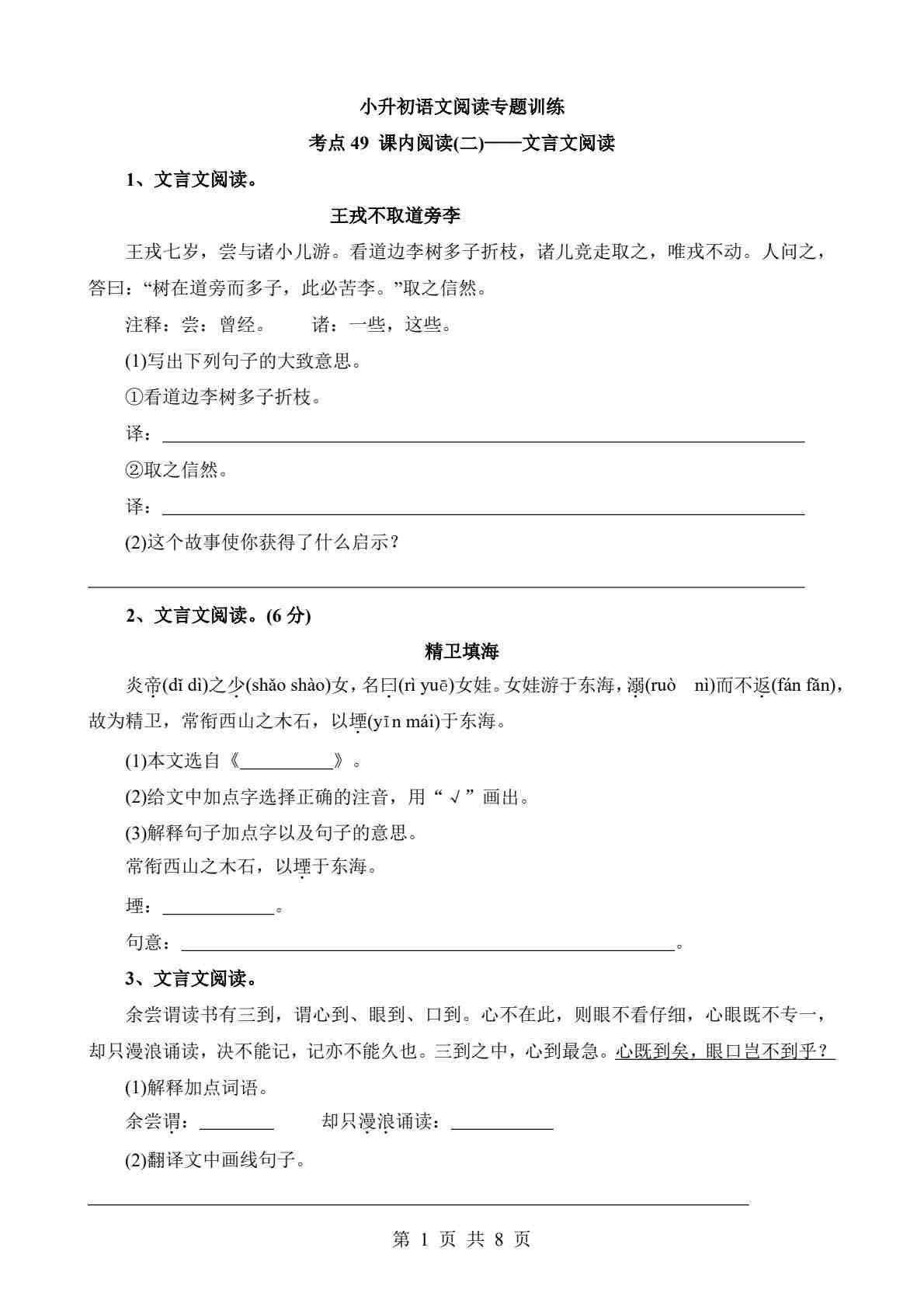 考点49 课内-文言文阅读