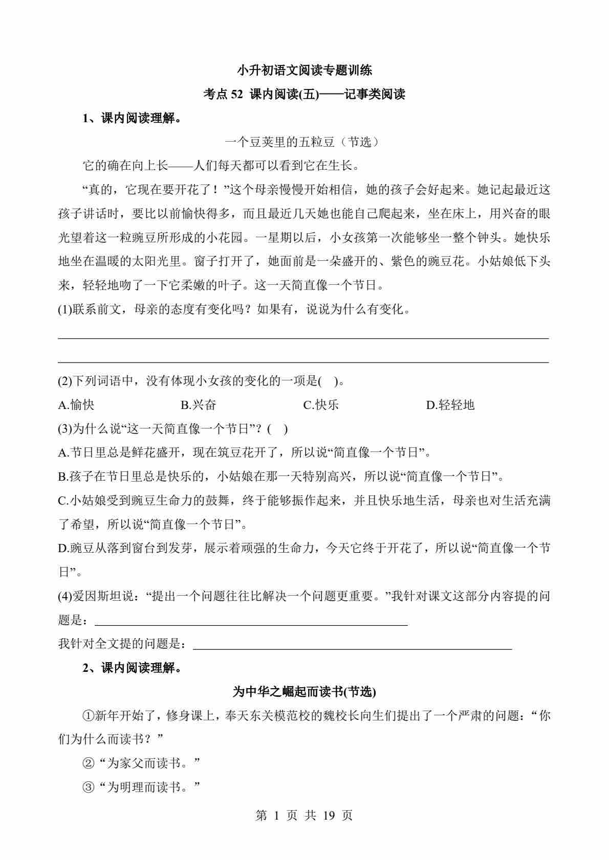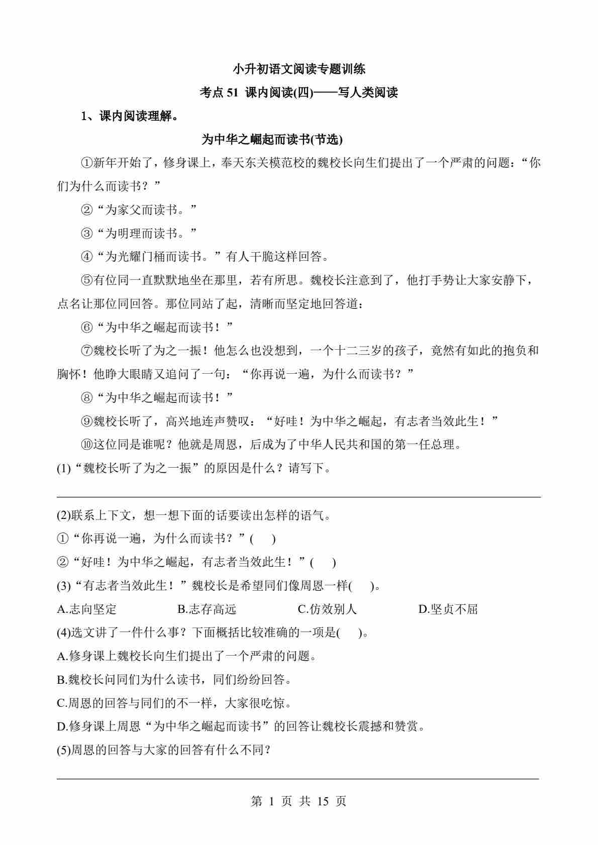 考点51 课内-写人类阅读