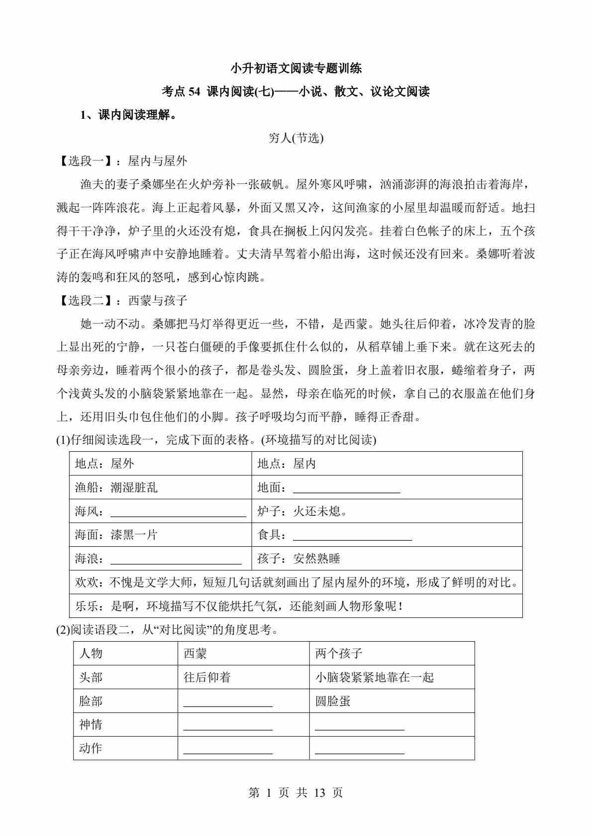 考点54 课内-小说、散文、议论文阅读