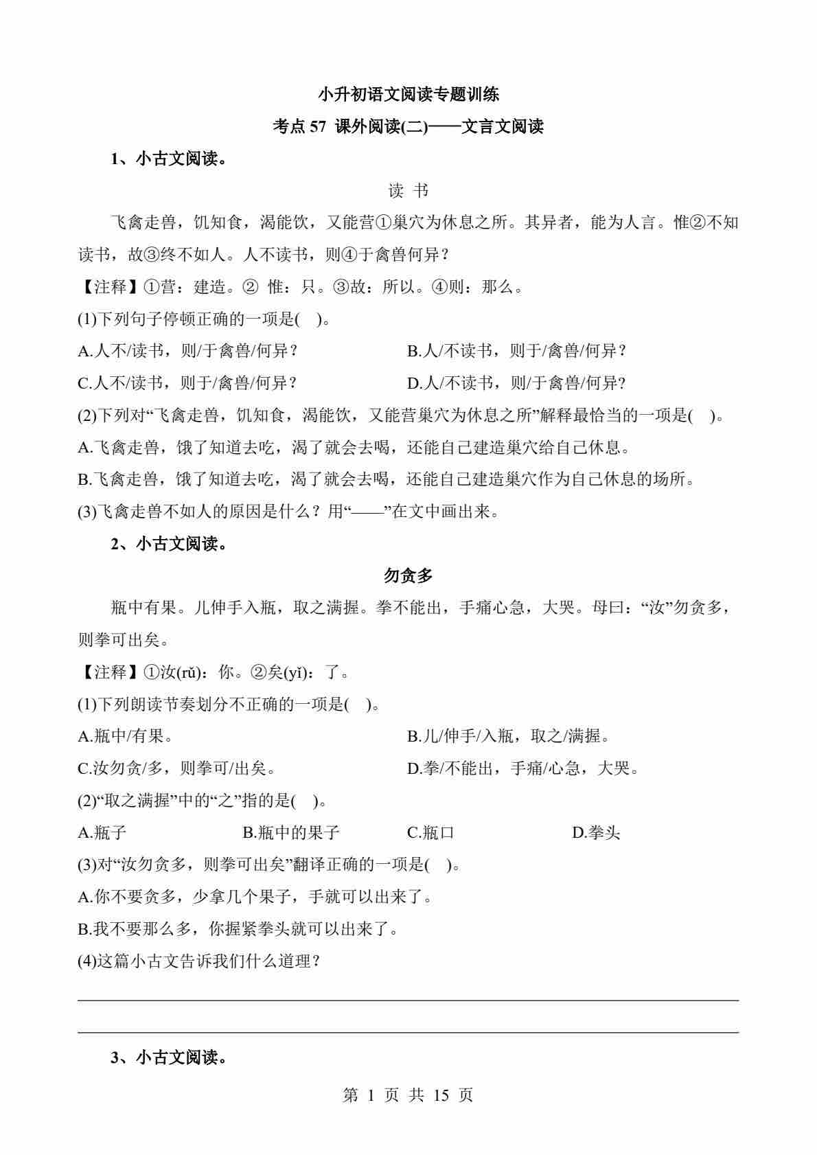 考点57 课外-文言文阅读