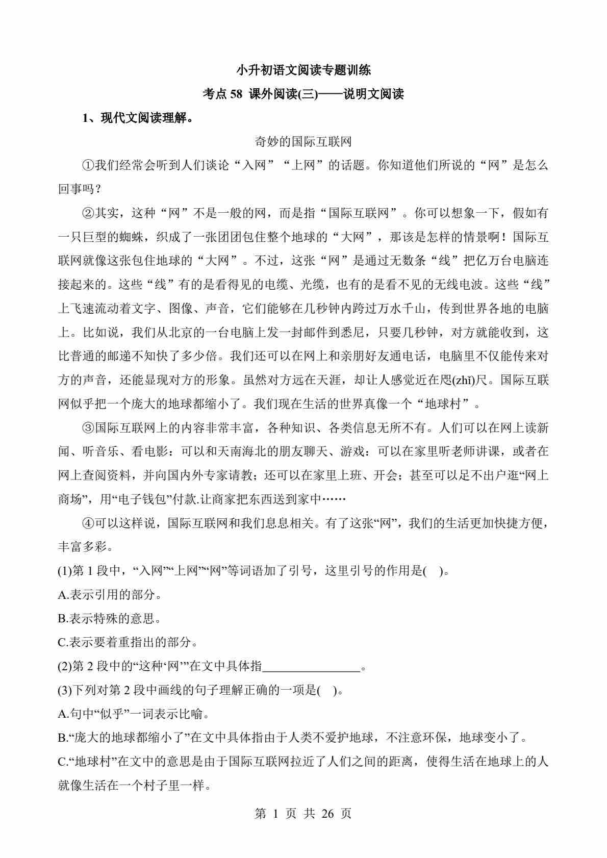 考点58 课外-说明文阅读