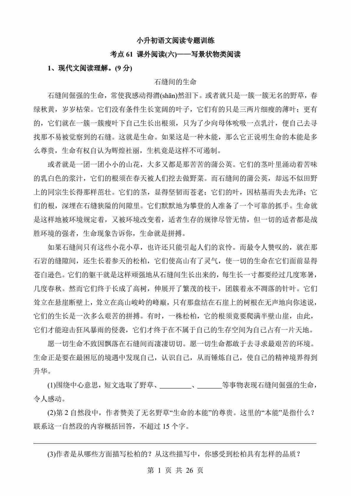 考点61 课外-写景状物类阅读