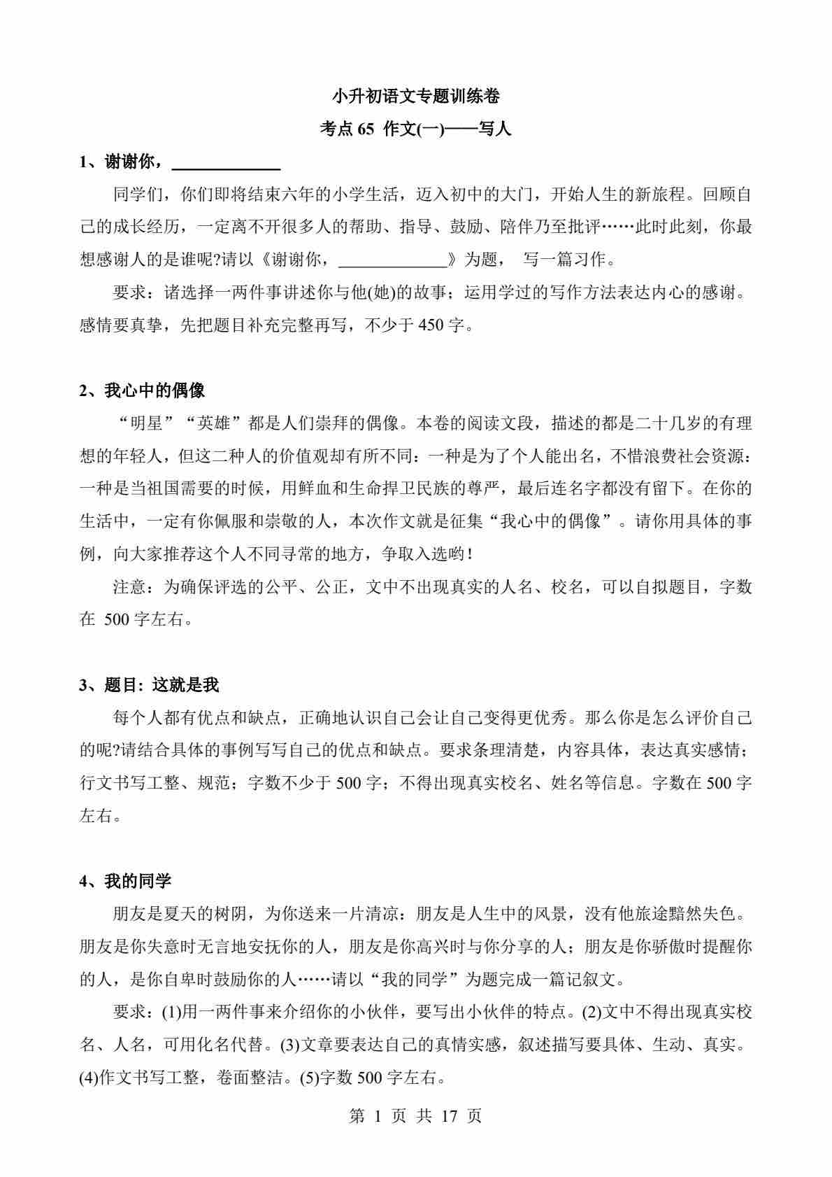 考点65 作文-写人类