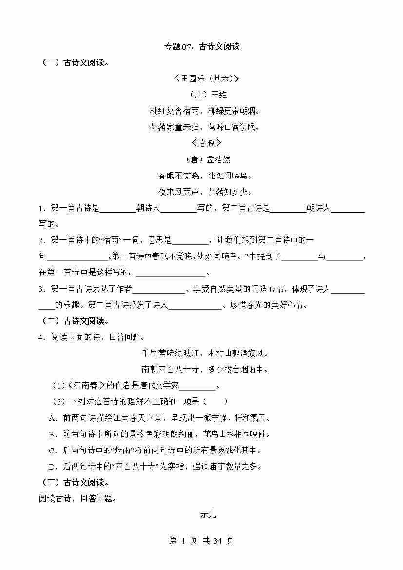 专题07 古诗文阅读