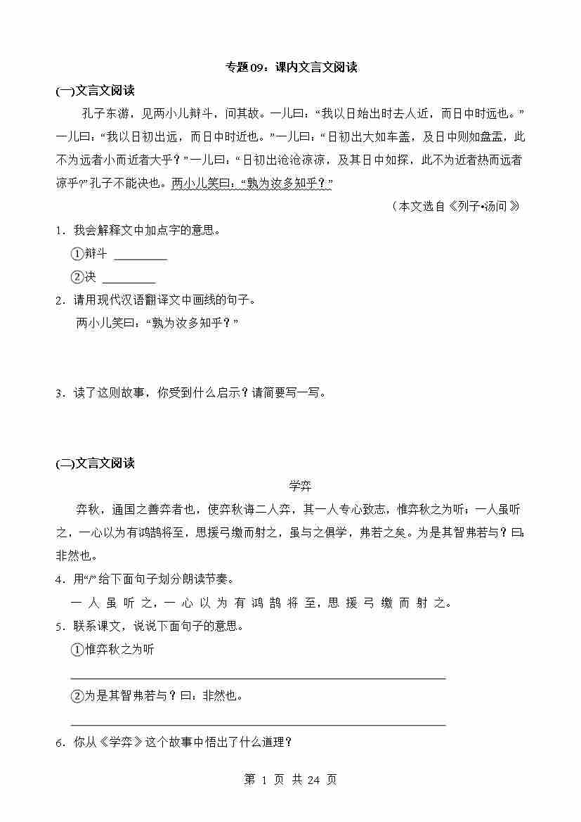 专题09 课内文言文阅读