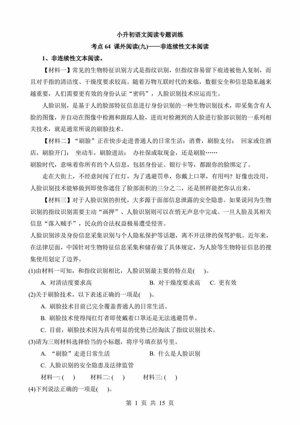 考点64 课外-非连续性文本阅读