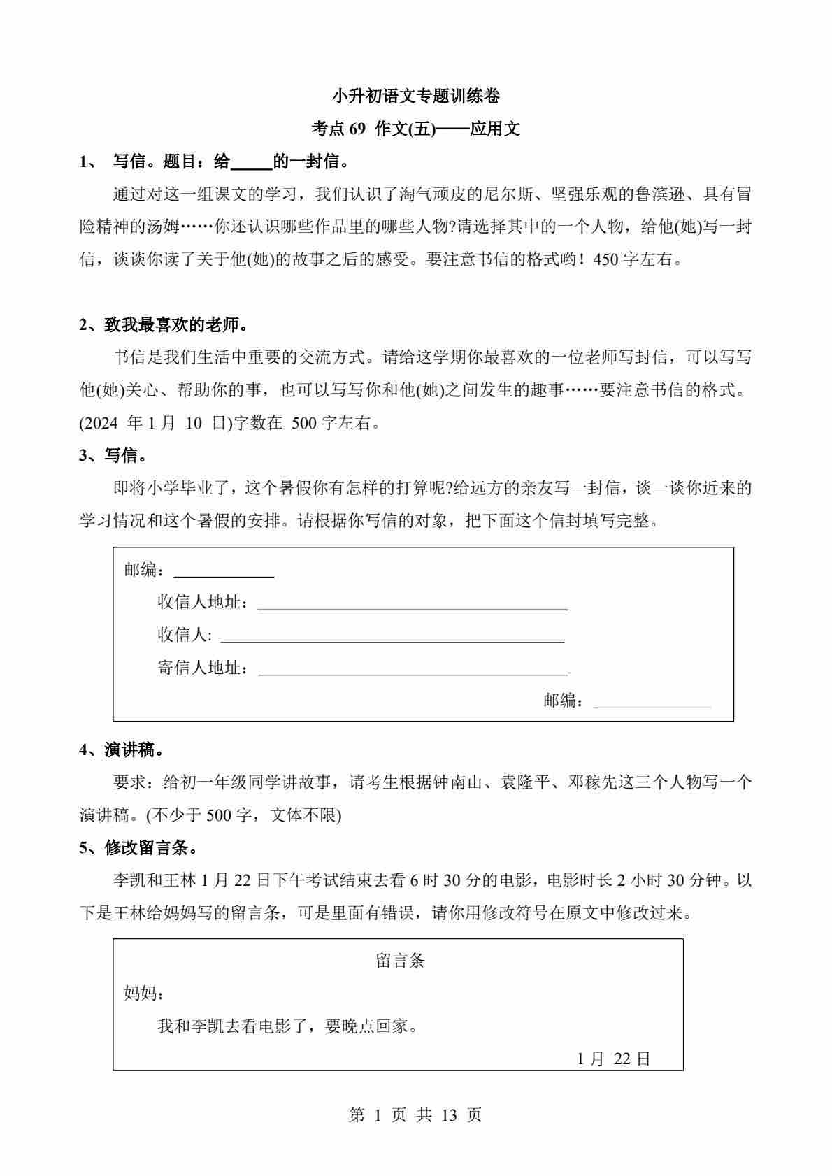 考点69 作文-应用文