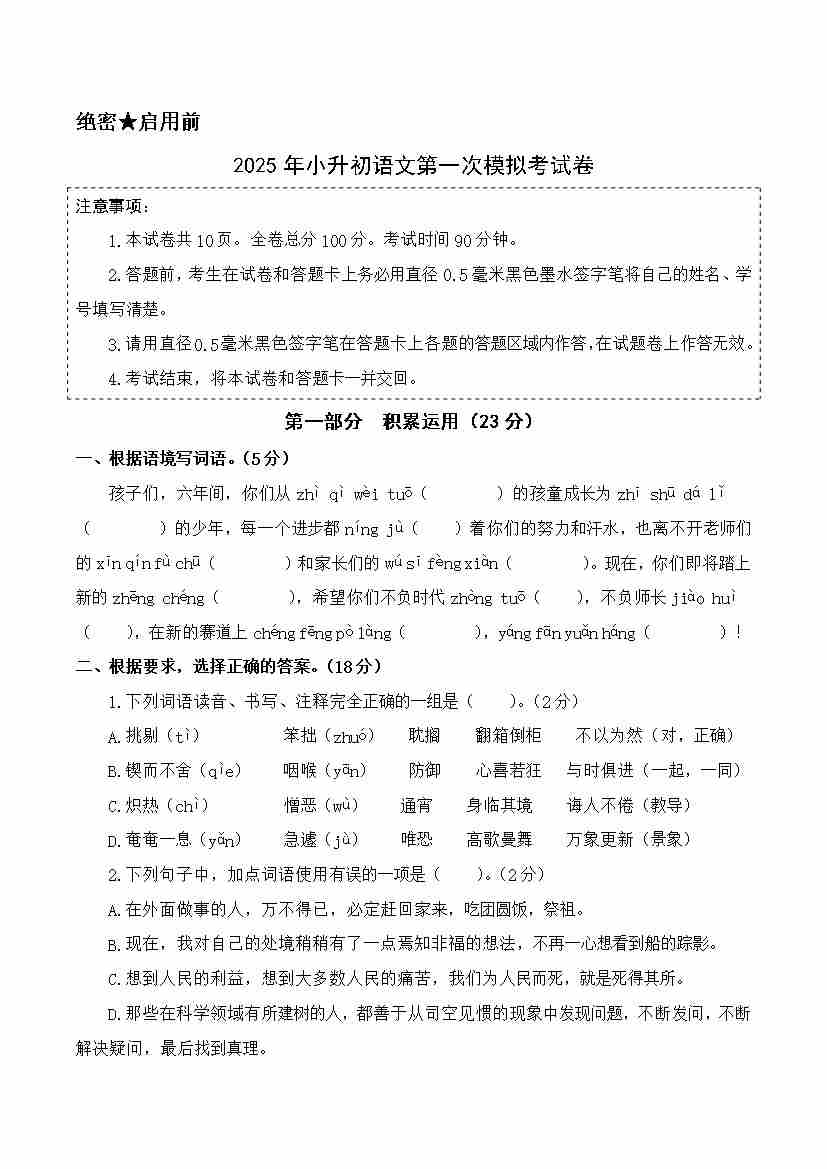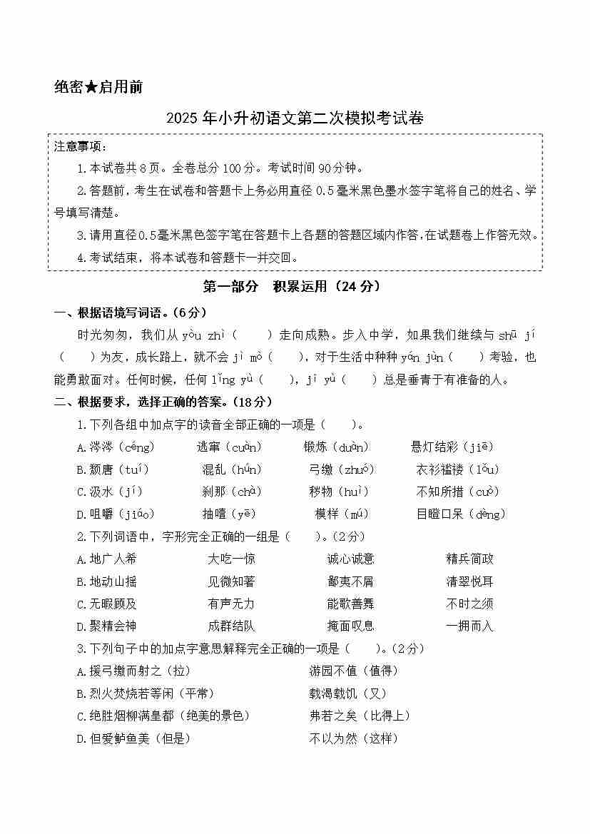 语文(基础卷02)(考试版A4)55