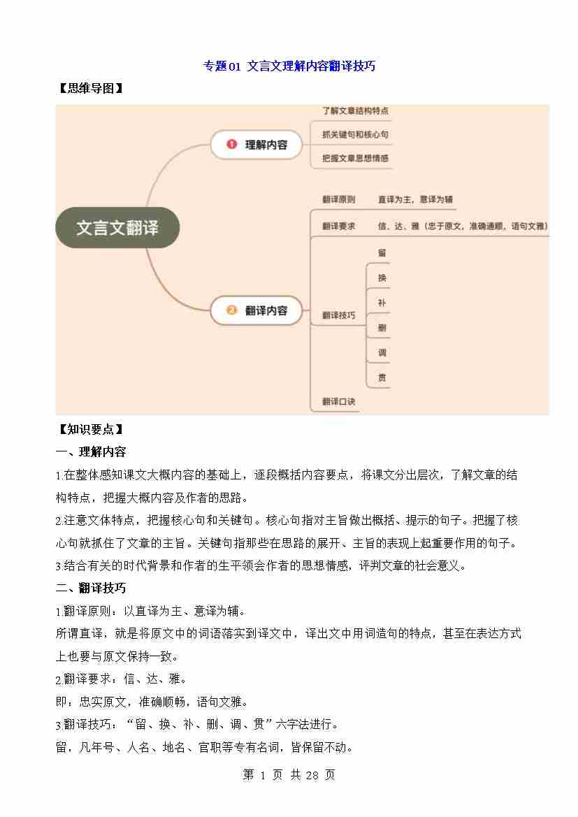 专题01 文言文理解内容翻译技巧
