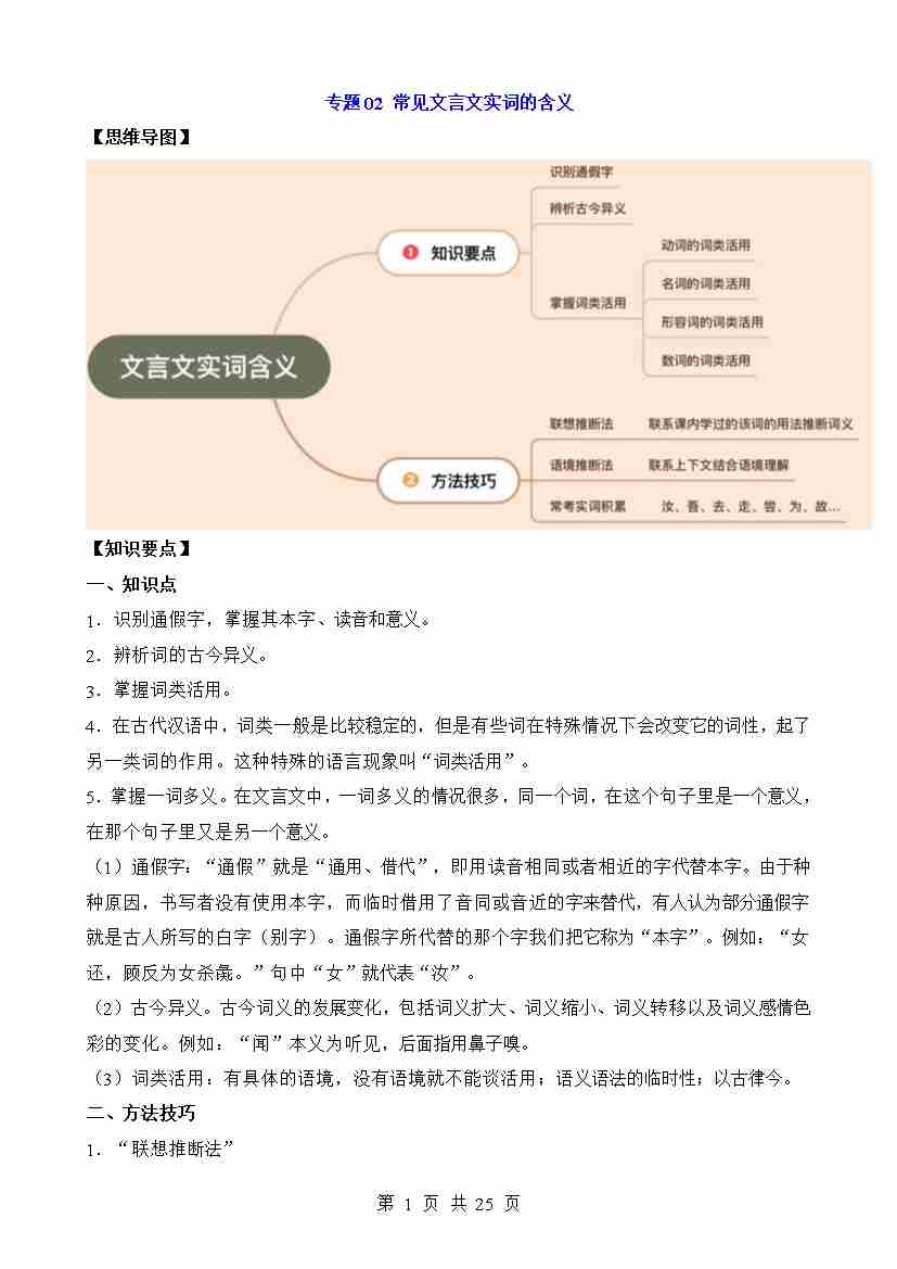 专题02 常见文言文实词的含义