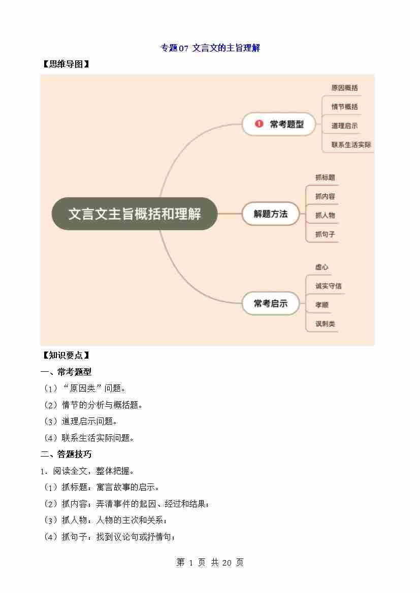 专题07 文言文的主旨理解